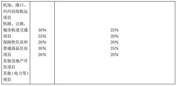 (二)项目资本金的最低比例要求