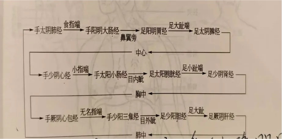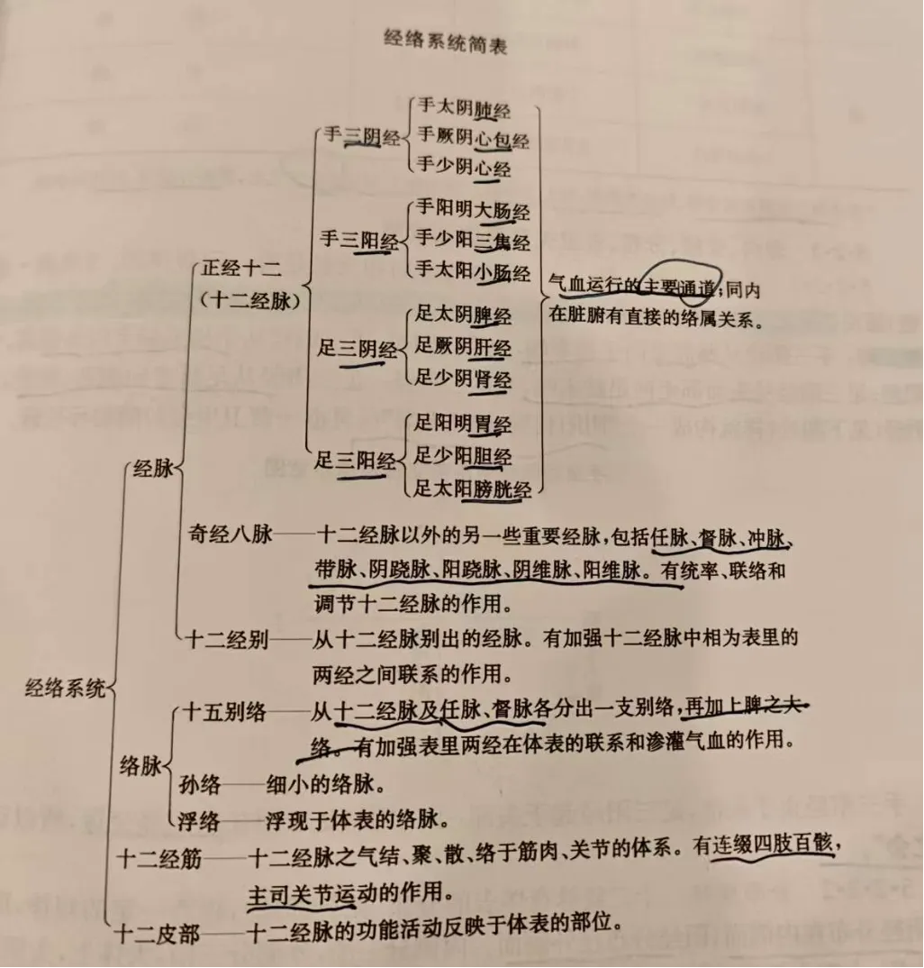 经络:是运行全身气血,联络脏腑肢节,沟通上下内外的通路。经络是经脉和络脉的总称。