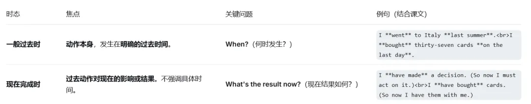 这是本课首次出现、也是英语中最核心的时态之一,用于连接过去与现在。