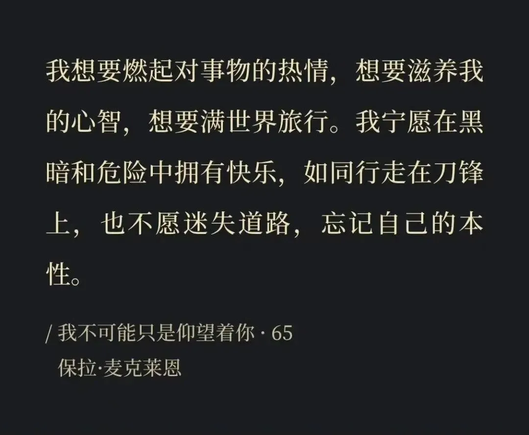 哲学家苏珊·奈曼在《为什么长大》里提出,当你童年的好奇逐渐消退,理想的力量跌入现实,面对应然与实然之间的鸿沟,你有两种选择:一,像斯多葛学派一样,现实如此,那就接受,向内求让灵魂变得安宁,“做过的梦还倒背如流,只是有了不同的感受,不奢想去外太空,躲在被窝,等赖床的周末”(陈奕迅《床头灯》);二,像康德一样,鼓起勇气改变现实,“尽自己最大的努力使周遭的世界更贴近应然,但也不忽视它的真实面目。”作者自然是赞美第二种选择,可人总是既不甘心接受,又没勇气改变。