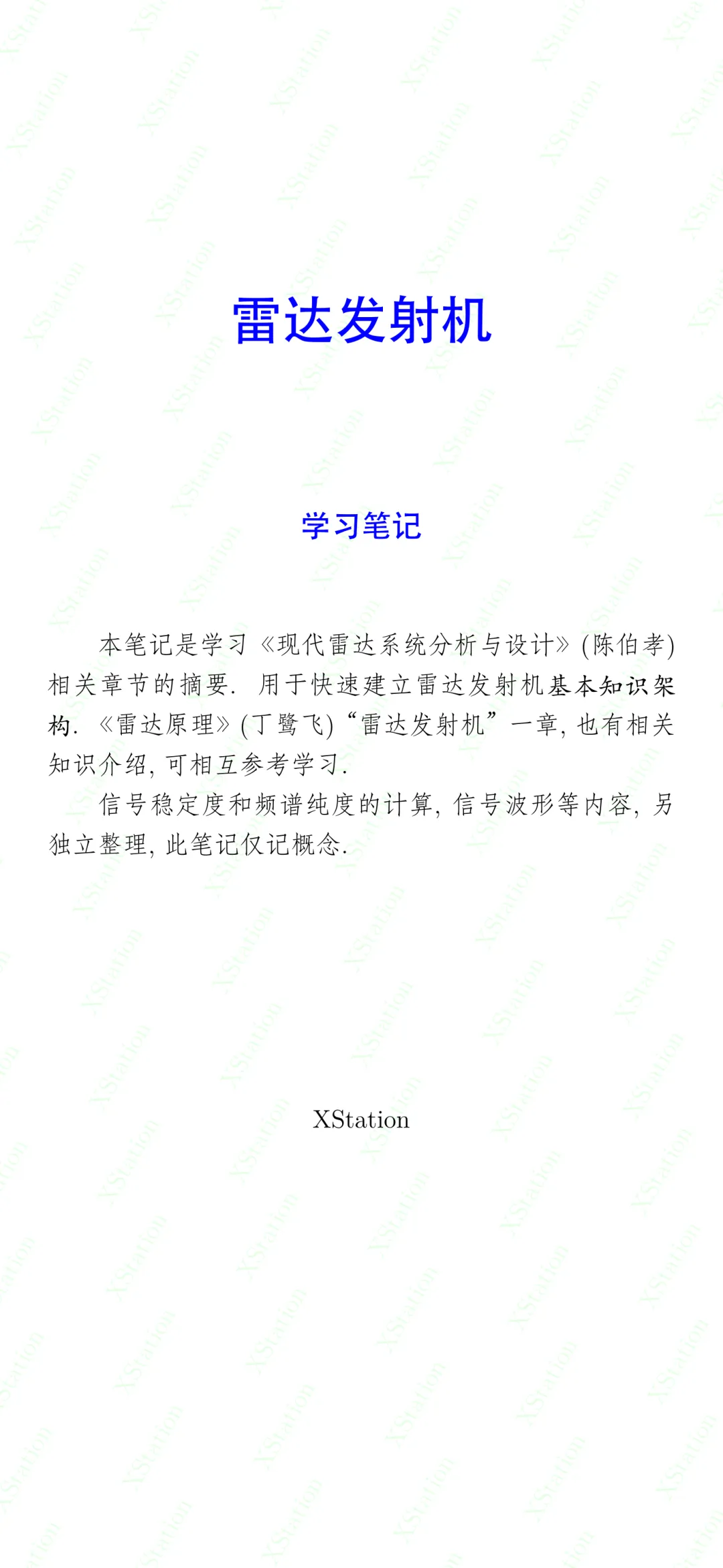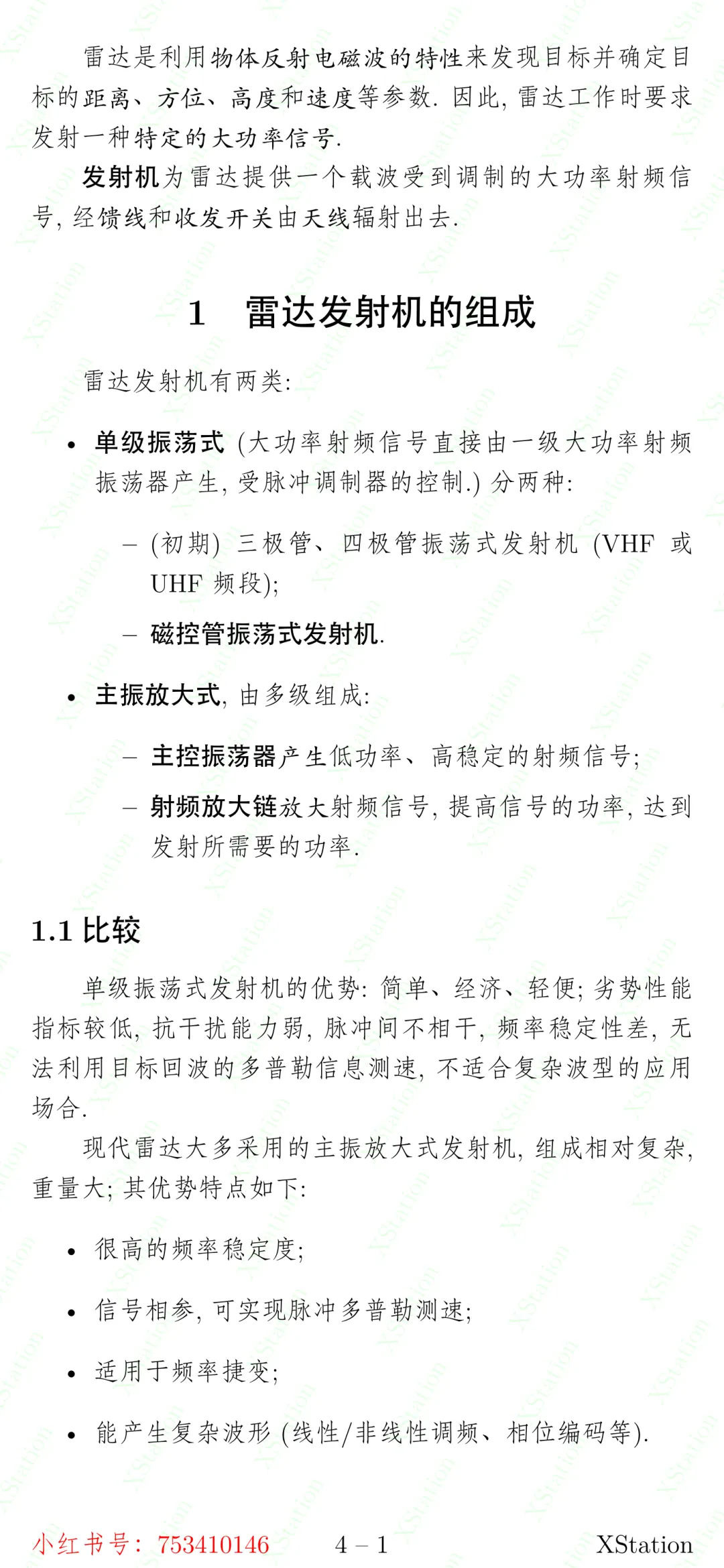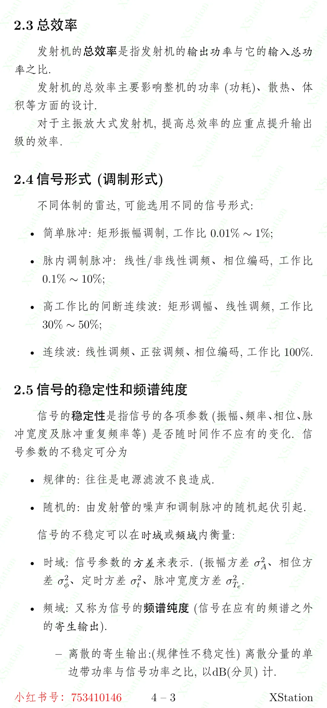 本笔记是学习《现代雷达系统分析与设计》(陈伯孝)相关章节的摘要. 用于快速建立雷达发射机基本知识架构. 《雷达原理》(丁鹭飞)“雷达发射机”一章, 也有相关知识介绍, 可相互参考学习.
