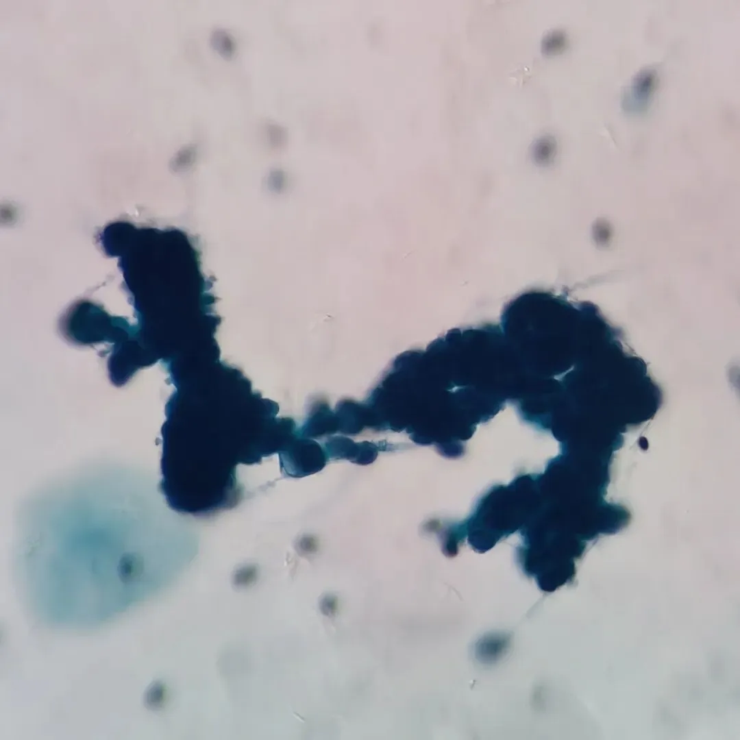TCT涂片中有一大片细胞簇,拍照细节见上图,微调有三维立体结构,整体呈现乳头样结构,像一条“小龙”。我的困惑是判读子宫内膜细胞,还是直接报AGC?我咨询了胡老师。