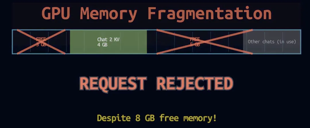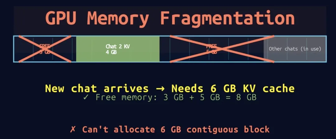 结论:这就是内存碎片化(Memory Fragmentation)——虽然总内存足够,但无法分配给新请求。