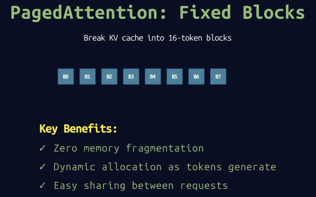 请求完成 → 释放块 → 块返回空闲池 → 立即分配给新请求