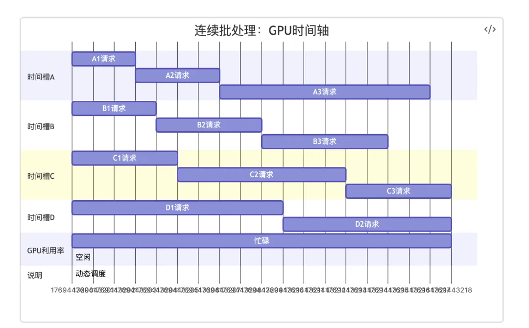 t=3s: 请求1完成 → → GPU空闲(等待其他请求)