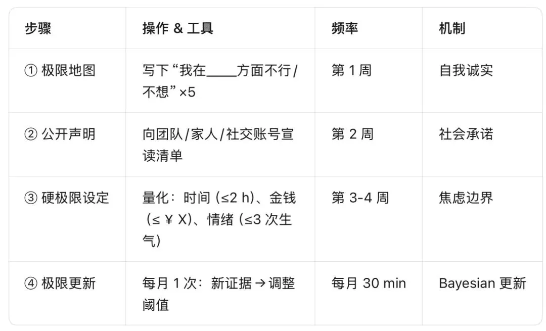 3. 硬极限设定→量化阈值(时间、金钱、情绪)