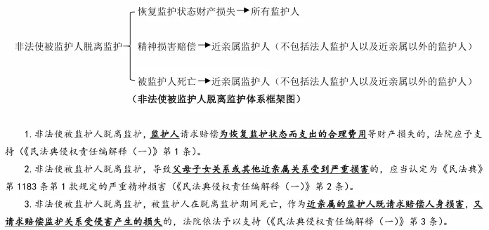 - 亲子权受侵害:如非法使被监护人脱离监护,导致亲子关系严重损害的,可主张精神损害赔偿。