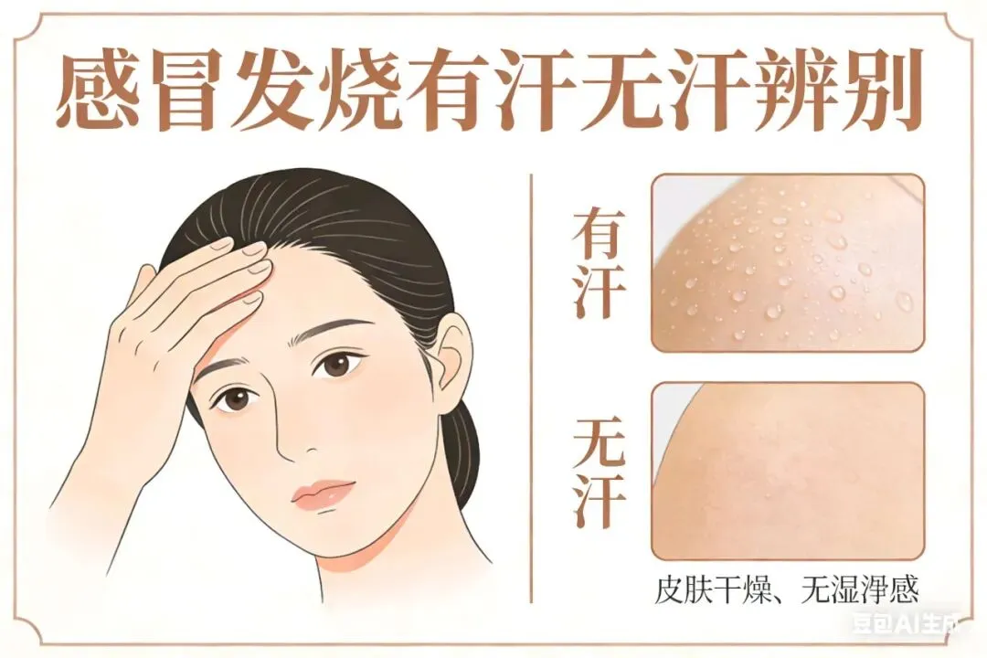 ✅ 时有汗:皮肤滞黏,汗出则体温降、汗停则体温升(38-39℃)→ 对应桂枝汤