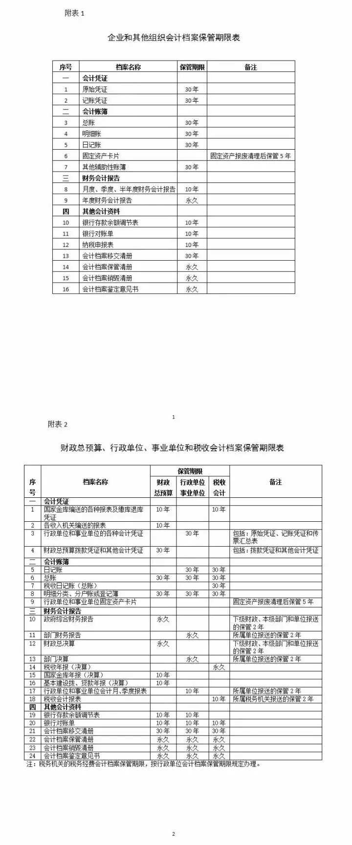 2.财政总预算、行政单位、事业单位和税收会计档案保管期限表