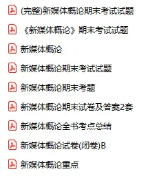 今天分享的资料是「0846-新媒体概论」电子版+学习笔记+知识点总结+期末考试重点+复习资料+习题集及答案+名词解释+历年真题试卷及答案+题库及答案+复习重点+思考题及参考答案+公式总结+考试重点基础题+知识总结+高清PDF可打印+免费分享!