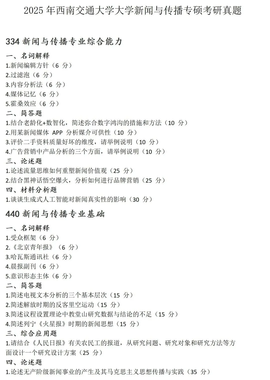 >西南交通大学新闻与传播考研真题2020-2025历年