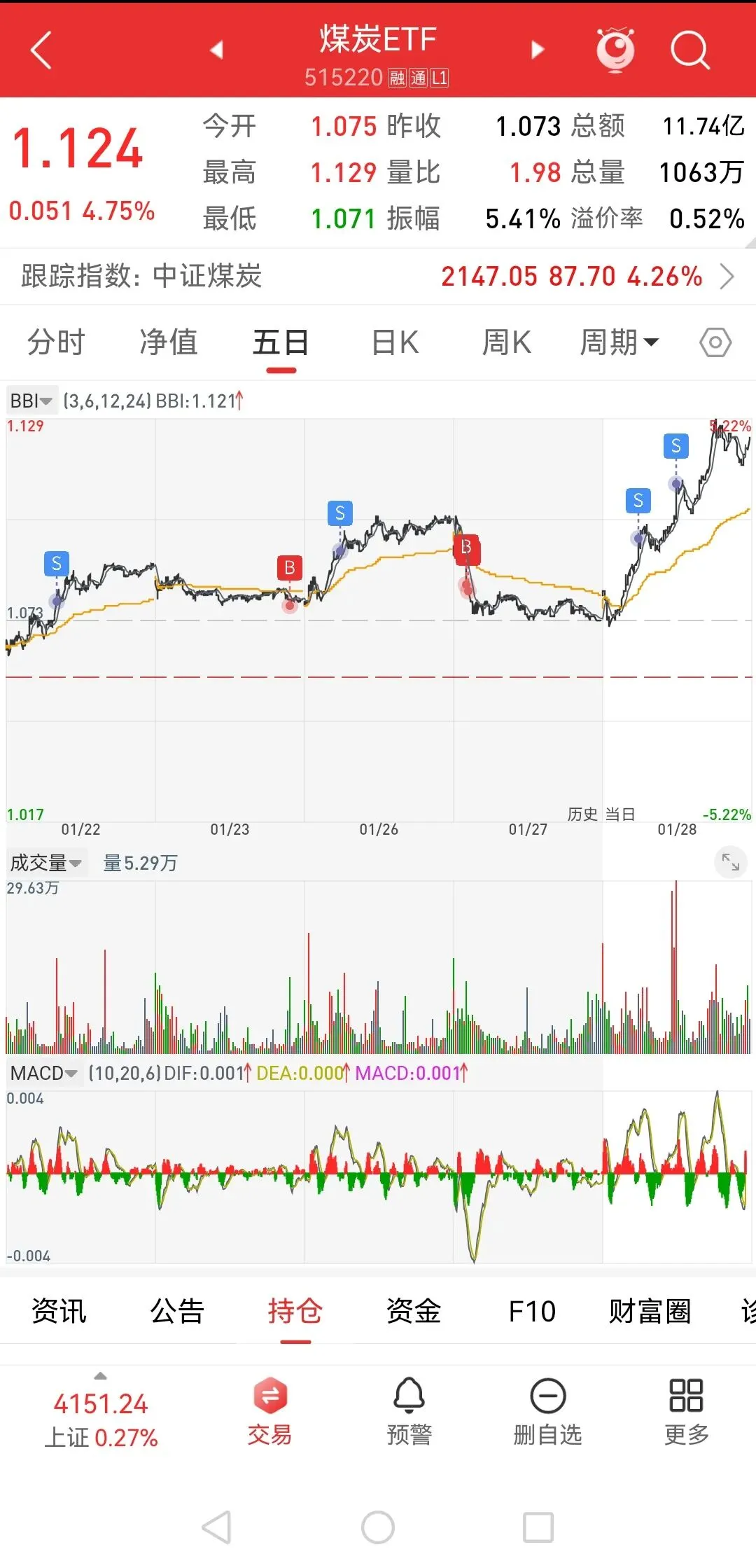 1、昨天网格补的煤炭ETF,今天大爆发,震荡向上行情把网格交易的威力体现得淋漓尽致,关键是不用自己操心,哪里是低点,哪里是高点,卖出了两笔,暂停了网格,因为要保留底仓。主打一个低买高卖,没有买入时机就持有底仓不动。