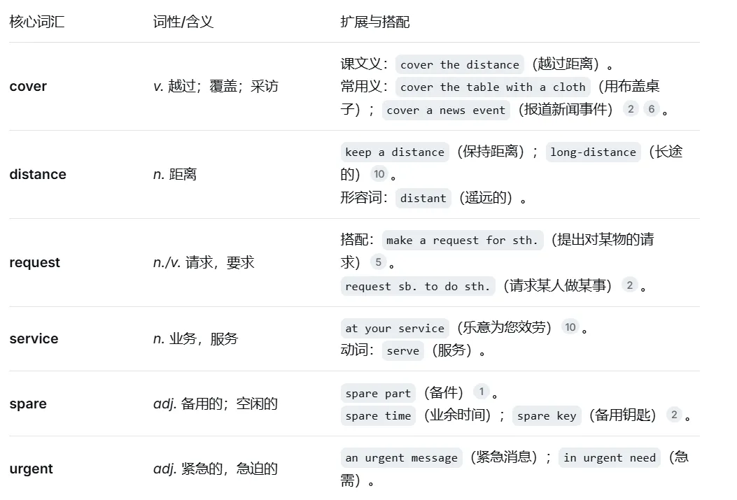 掌握 cover(越过/覆盖)和 request(请求)的多重含义与用法。