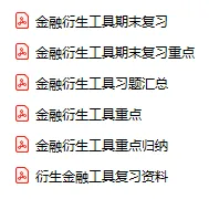 今天分享的资料是「1159-金融衍生工具」电子版+学习笔记+知识点总结+期末考试重点+复习资料+习题集及答案+名词解释+历年真题试卷及答案+题库及答案+复习重点+思考题及参考答案+公式总结+考试重点基础题+知识总结+高清PDF可打印+免费分享!