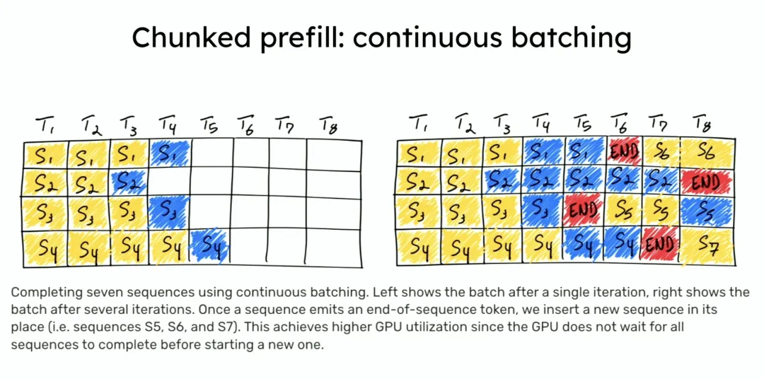 当一个请求完成后,立即放入新请求,充分利用 GPU 时间。