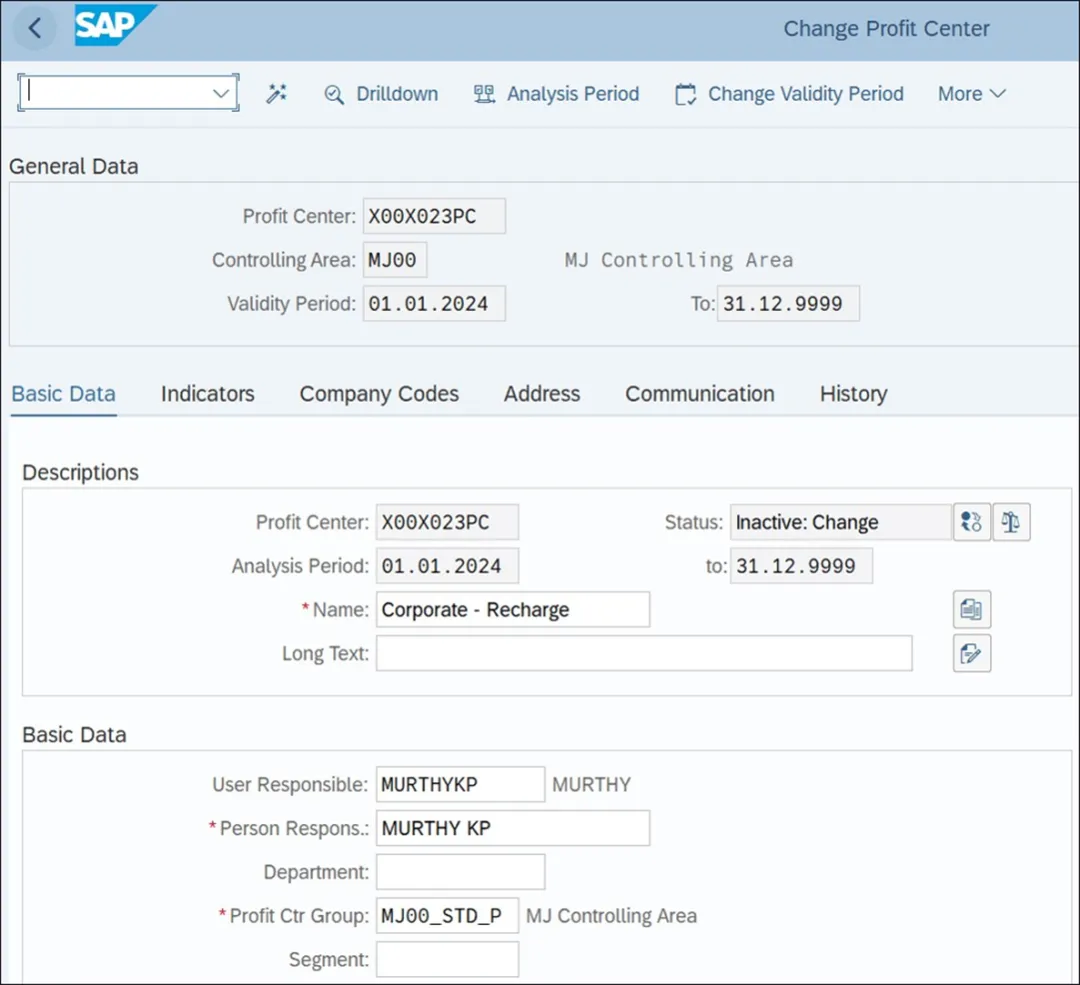 - 该字段指示利润中心的状态。要在财务会计中使用利润中心,状态必须设置为“活动”。“非活动:创建”是利润中心创建期间的状态。“非活动:更改”是利润中心变更期间的状态,但系统在变更期间也会保留利润中心的活动版本。激活利润中心的变更版本后,活动版本将被覆盖。“非活动:删除”是设置删除标志时适用的状态。激活设置为删除的利润中心后,该利润中心将被删除。