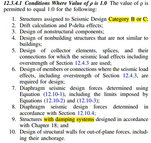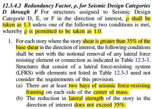 当SDC-D~F时,即抗震等级较高是,美标要求冗余系数直接取1.3,除了以下的特殊情况,可以仍然取1.0。