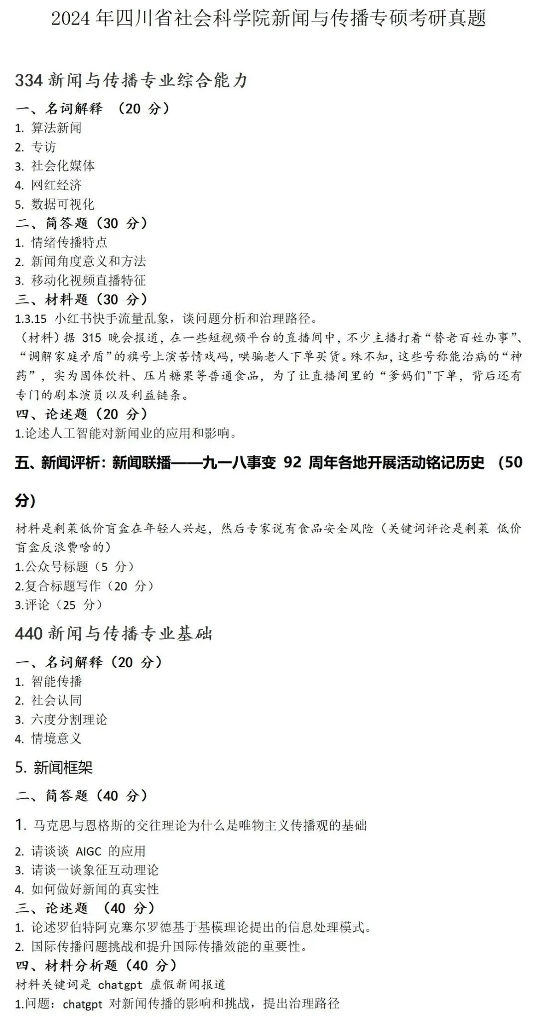 >四川省社会科学院大学新闻与传播考研真题2024
