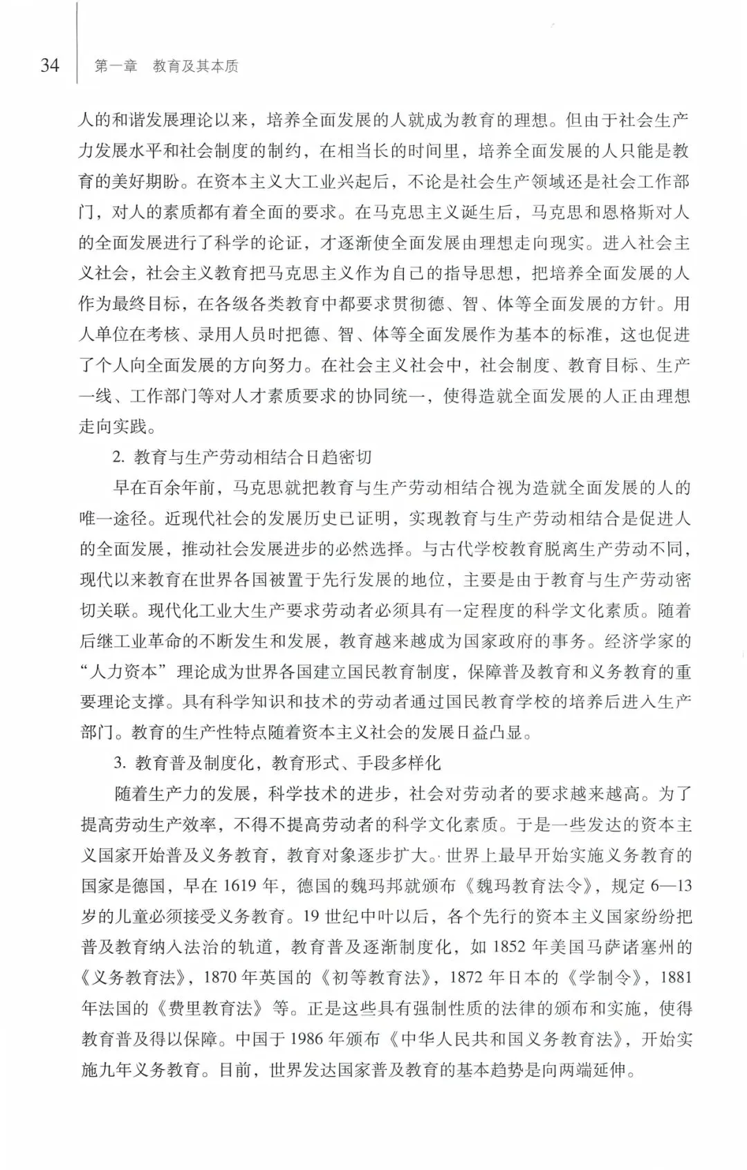 绪论 教育学及其发展第一节 教育学及其研究对象一、教育学和教育科学二、教育学的研究对象三、作为一种特殊研究对象的学校教育第二节 教育学的产生和发展一、教育学的产生二、教育学的发展历程三、教育学的发展趋势第三节 中国化马克思主义教育理论的发展一、马克思主义教育理论在中国的传播二、社会主义改造和建设时期中国教育理论的探索三、改革开放以来中国教育理论的发展第四节 学习和研究教育学的指导思想第一章 教育及其本质第一节 教育的产生与发展一、教育的起源二、教育发展的历史进程三、当代世界教育发展趋势第二节 教育的基本内涵一、教育的词源与词义二、教育的概念三、教育的本质第三节 教育的要素与形态一、教育的基本要素二、教育的主要形态第二章 教育与社会发展第一节 社会对教育发展的影响一、生产力对教育的影响二、政治对教育的影响三、人口对教育的影响四、文化对教育的影响第二节 教育对社会发展的促进功能一、教育的经济功能二、教育的政治功能三、教育的人口功能四、教育的文化功能第三节 教育在社会主义现代化建设中的地位与作用一、教育为社会主义现代化建设服务二、科教兴国是一项重要战略三、教育是民族振兴的基石第三章 教育与人的发展第一节 人的身心发展及其影响因素一、人的身心发展的内涵及特征二、影响人的身心发展的主要因素三、学校教育在个体发展中的独特价值第二节 教育促进个体发展的功能一、教育促进个体社会化的功能二、教育促进个体个性化的功能三、教育促进个体社会化与个性化的关系第三节 教育促进个体发展的条件一、把“育人为本”作为教育工作的根本要求二、把学生作为教育活动和发展的主体三、坚持教育创新第四章 教育目的第一节 教育目的概述一、教育目的的内涵二、教育目的的层次结构三、教育目的的社会基础第二节 我国教育目的的理论基础一、马克思主义人的全面发展学说二、马克思主义教育与生产劳动相结合的理论第三节 我国的教育目的一、我国教育目的的历史演变二、我国教育目的的基本要求第四节 素质教育与创新人才培养一、素质教育的提出与发展二、素质教育的内涵三、创新人才的培养第五章 人的全面发展教育第一节 德育一、德育的内涵和意义二、德育的目标三、德育的内容第二节 智育一、智育的内涵和意义二、智育的目标三、智育的内容第三节 体育一、体育的内涵和意义二、体育的目标三、体育的内容第四节 美育一、美育的内涵和意义二、美育的目标三、美育的内容第五节 劳动技术教育一、劳动技术教育的内涵和意义二、劳动技术教育的目标三、劳动技术教育的内容第六章 学校教育制度第一节 学校的形成与发展一、学校的产生二、学校的发展三、现代学校的基本职能第二节 现代学校教育制度一、学校教育制度的内涵二、我国的学校制度三、部分国家的学校制度第三节 学校教育制度的改革一、我国的学校教育制度改革二、世界范围内学校教育制度改革的趋势第七章 课程第一节 课程概述一、课程的概念二、课程的类型三、课程计划、课程标准与教科书第二节 课程开发一、课程目标的确定二、课程内容的选择与组织三、课程实施与课程评价第三节 课程改革一、21世纪我国的基础教育课程改革二、当代世界课程改革的趋势第八章 教学第一节 教学概述一、教学的基本内涵二、教学的主要作用三、教学的基本任务第二节 教学理论与规律一、教学理论二、教学要素、过程及其规律三、教学原则第三节 教学实施一、教学目标二、教学环节三、教学方法四、教学组织形式五、教学评价第四节 中小学教学改革一、我国中小学教学改革的趋势二、当代世界中小学教学改革的趋势第九章 教师与学生第一节 教师一、教师职业与教师角色二、教师的权利与义务三、教师的专业发展四、教师与学生的关系第二节 班主任一、班主任的角色与作用二、班主任的任务与职责三、班主任与班级管理第三节 学生一、学生身心发展的特点二、学生观三、学生的权利与义务四、学生在教育过程中的地位第十章 教育科学研究第一节 教师与教育科研一、教师开展教育科研的意义二、教师开展教育科研的类型三、教师开展教育科研的导向第二节 教育科研过程一、选择研究课题二、研究设计三、资料搜集与数据采集四、资料与数据的处理与分析五、论文撰写和成果发表第三节 常用的研究方法一、文献法二、调查法三、行动研究四、叙事研究五、案例研究阅读文献人名译名对照表后 记