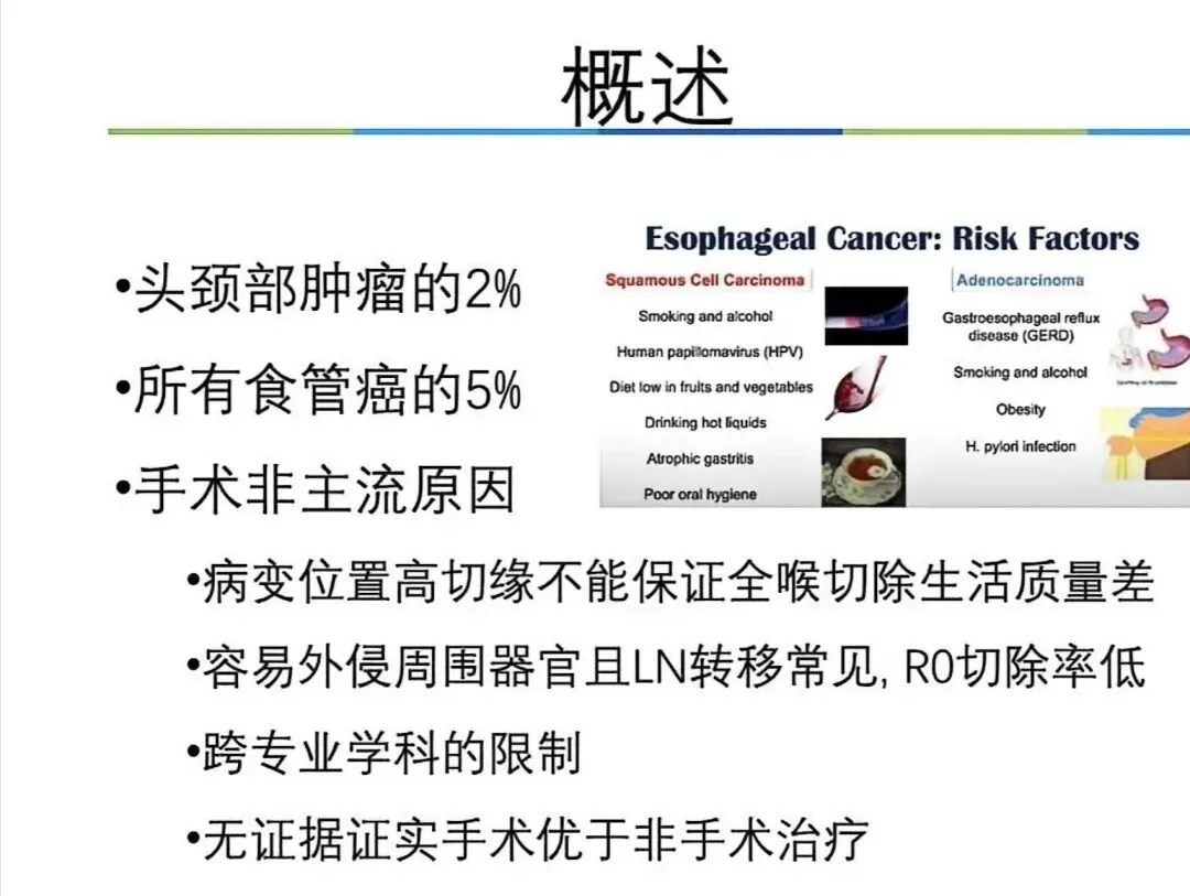 1. 罕见性:颈段食管癌在头颈部肿瘤中占比约2%,在所有食管癌中占比约5%,属于相对罕见的肿瘤。