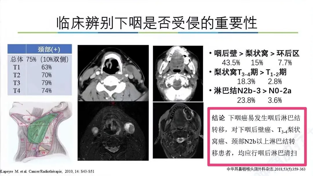 若肿瘤侵犯下咽,则咽后淋巴结转移风险显著增加(下咽后壁癌可达43.5%)。