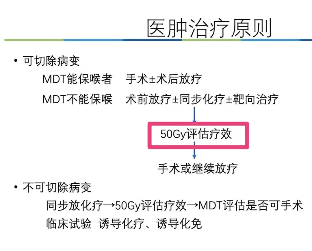 MDT评估不能保喉:首选 术前放疗/放化疗 ± 同步化疗/靶向治疗,治疗后再次评估是否可手术。