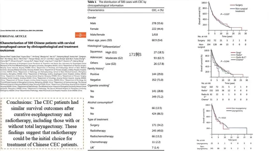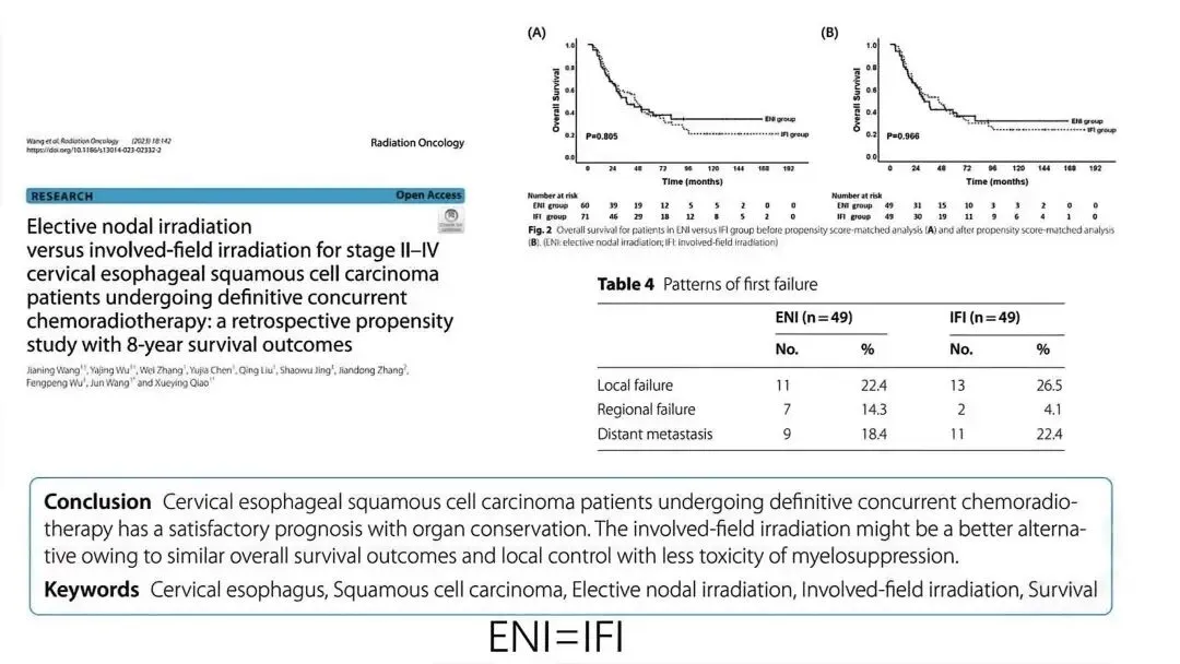 结论指出:放疗可作为中国颈段食管癌患者的初始治疗选择。