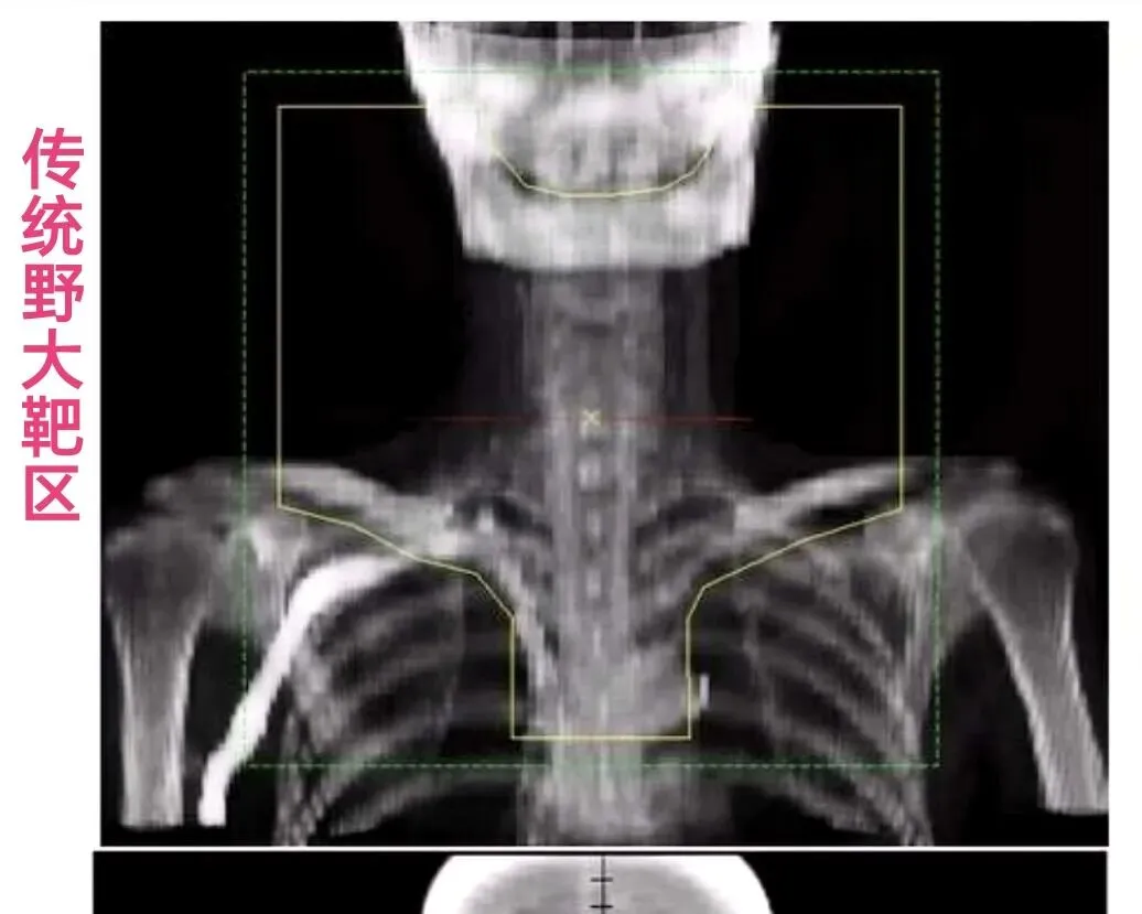 传统大野照射,覆盖广泛的淋巴引流区(如从颅底到气管分叉)。