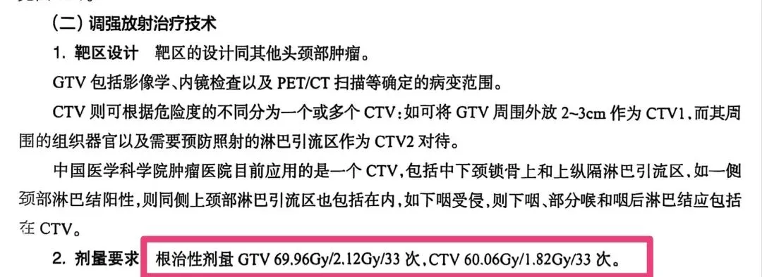 第三版《头颈部肿瘤放射治疗图谱》中颈段食管癌的剂量:⬇️: