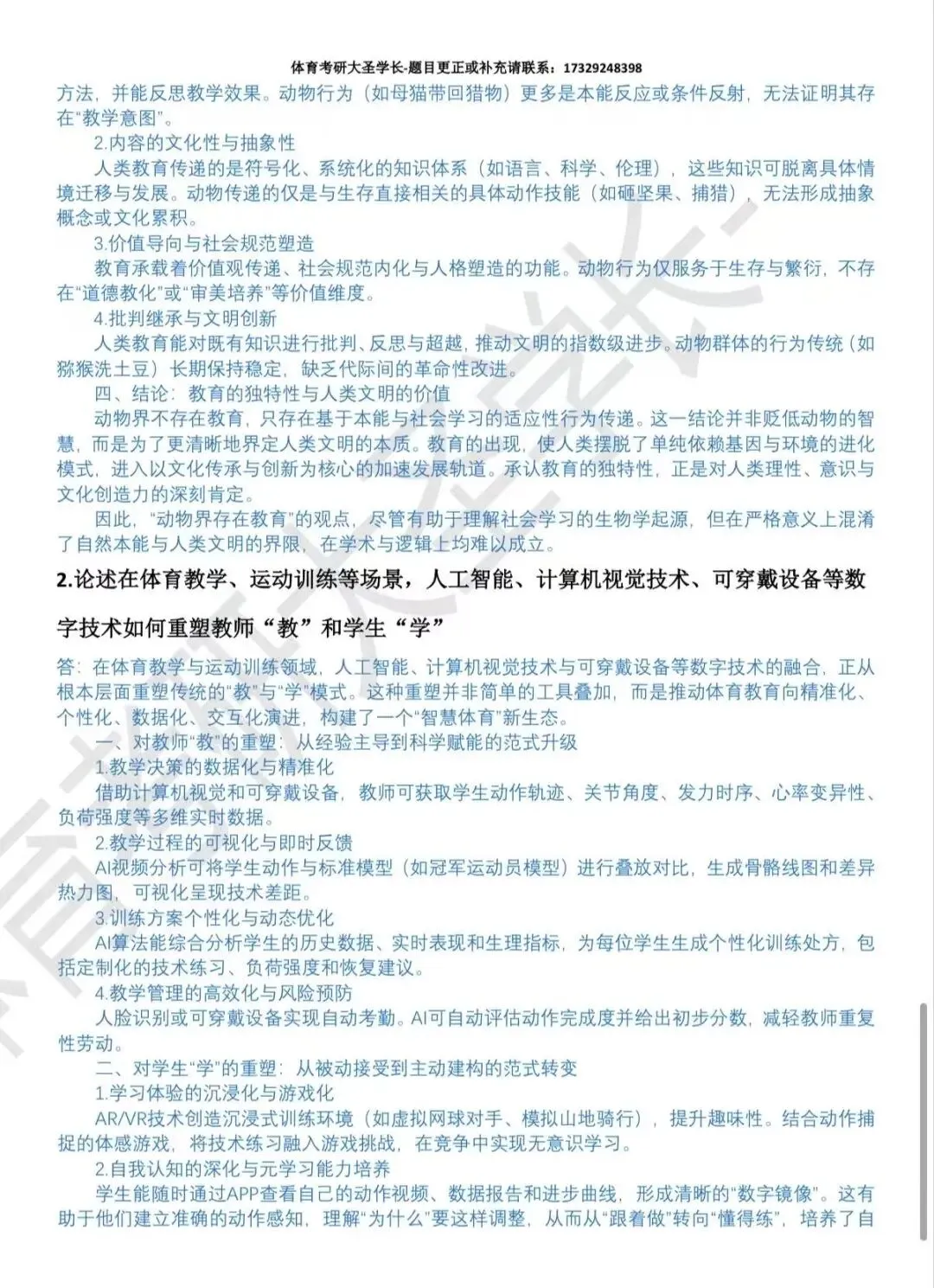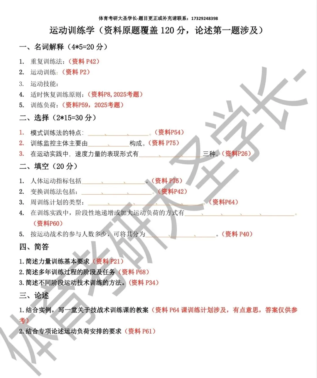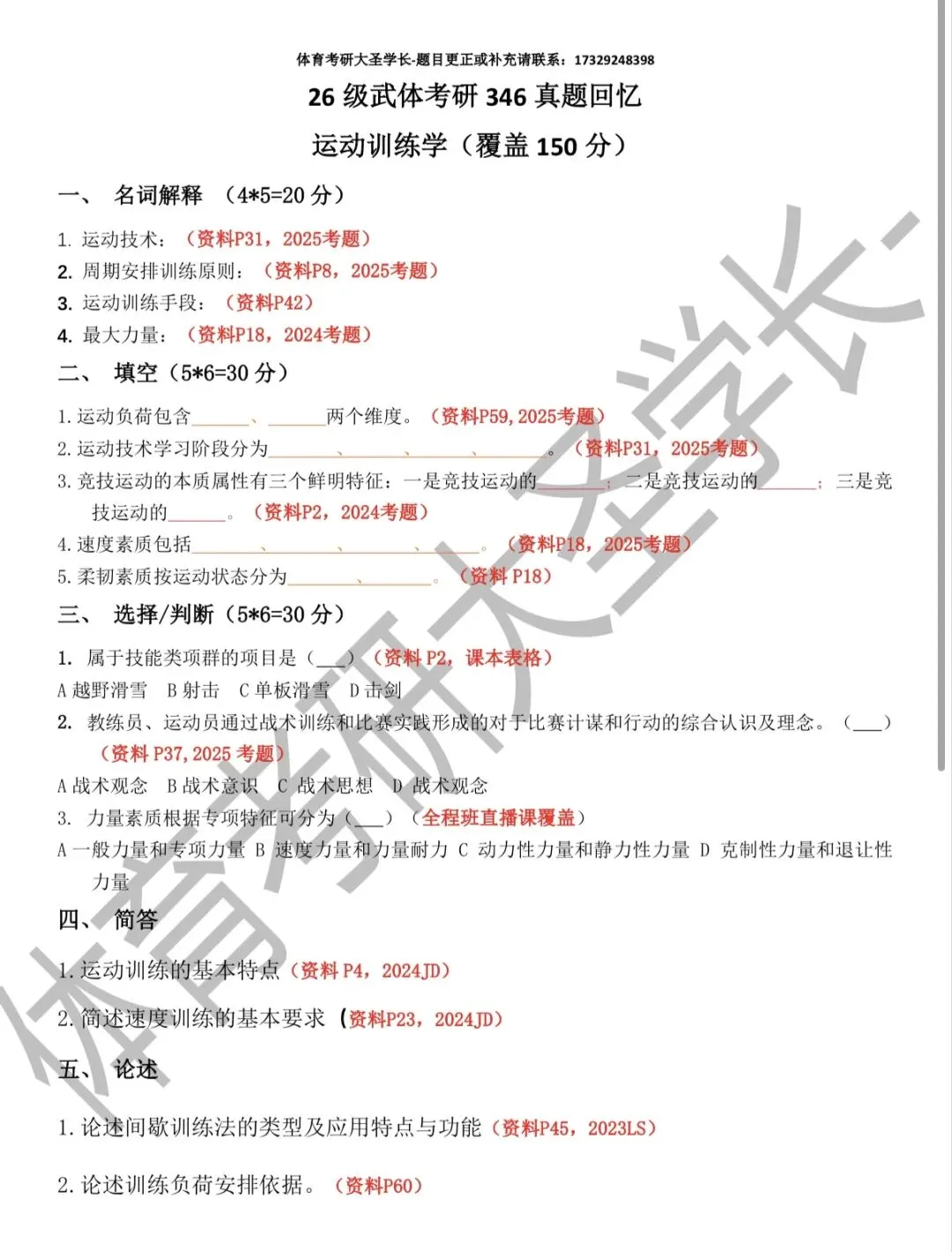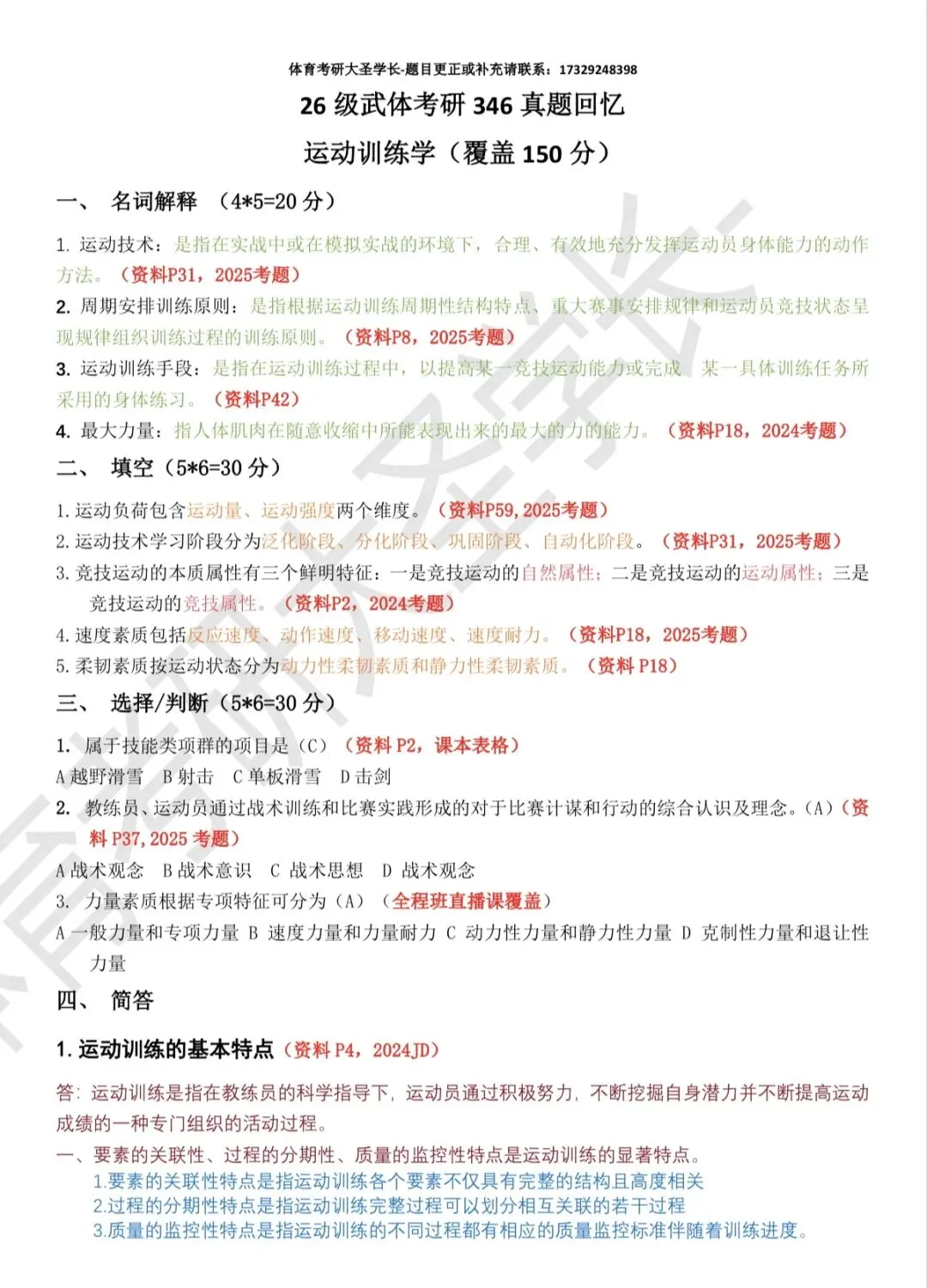 今年真题相较2025的真题题型减少了判断题,训练学增设教案类题目。