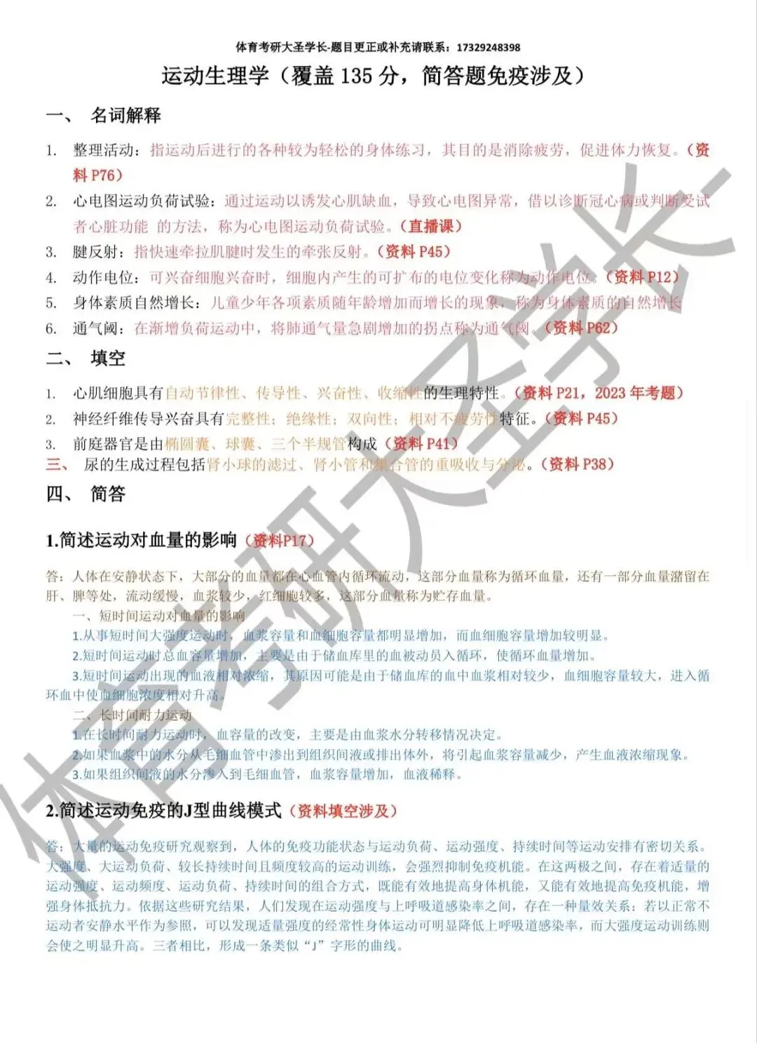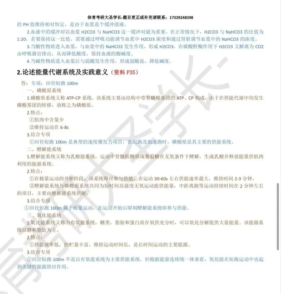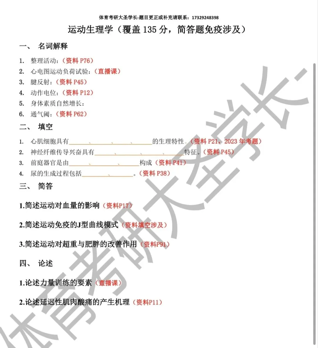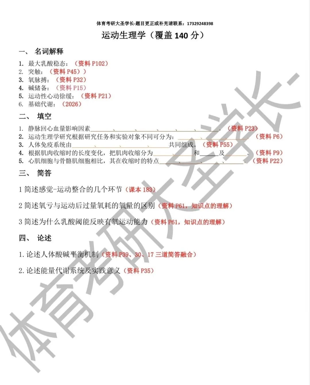 3.2运动生理学覆盖135分,论述题第一题全程班直播课有讲到。