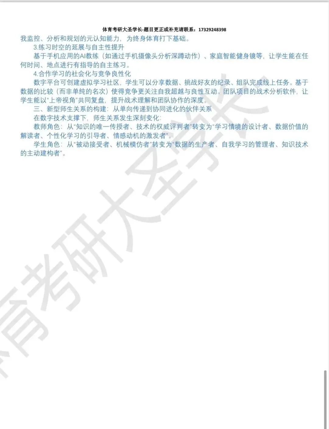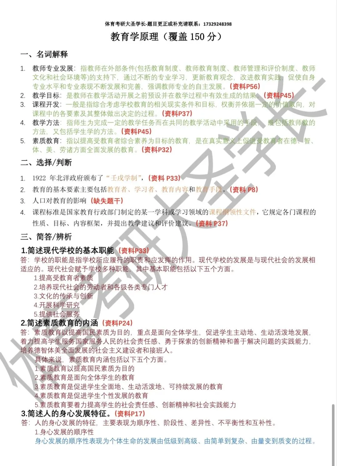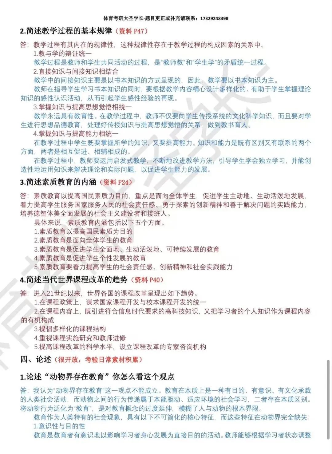 学硕相对来说难度高于专硕,学硕训练学论述题出了一道教案类题目,对于没接触过的同学可能很懵,但不算新奇,毕竟科目三教案必考;生理学简答的免疫和论述的要素较偏;教育学原理很基础。