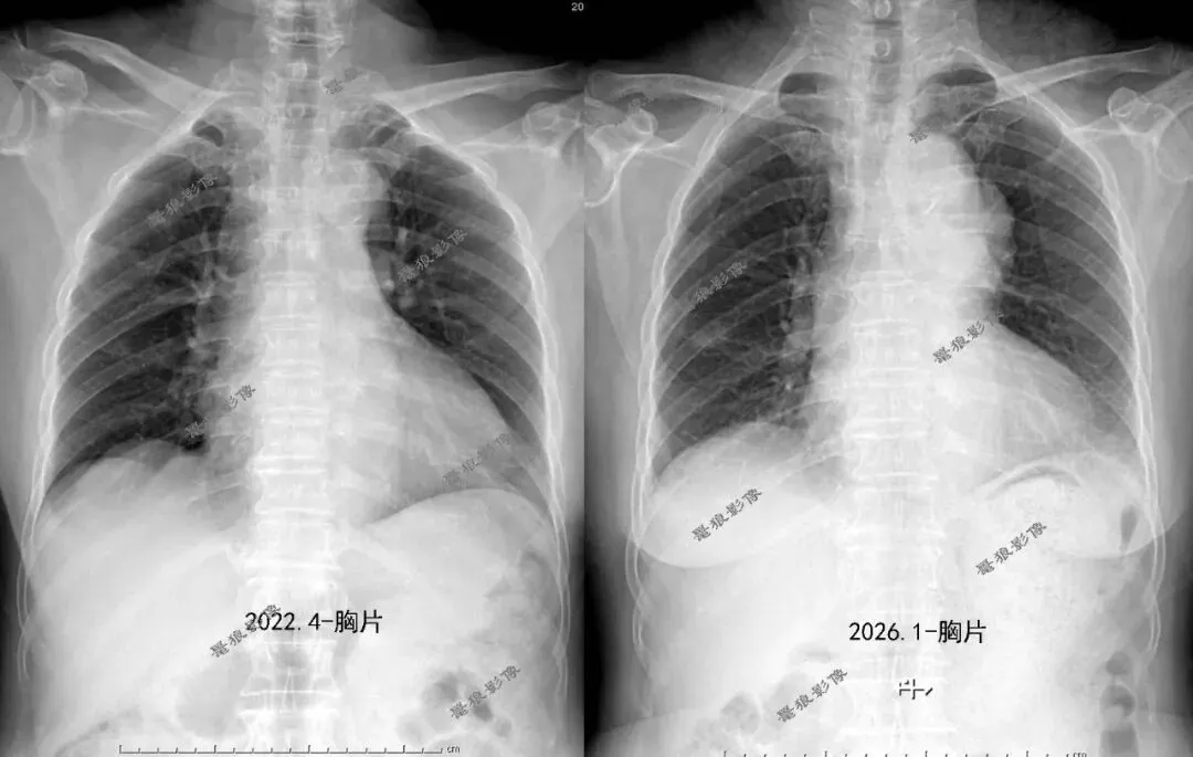 与前片2022年4月对比,新增主动脉弓旁瘤样软组织密度影,考虑主动脉瘤可能性大,请密切结合临床,建议进一步检查。胸部CT平扫+增强提示: