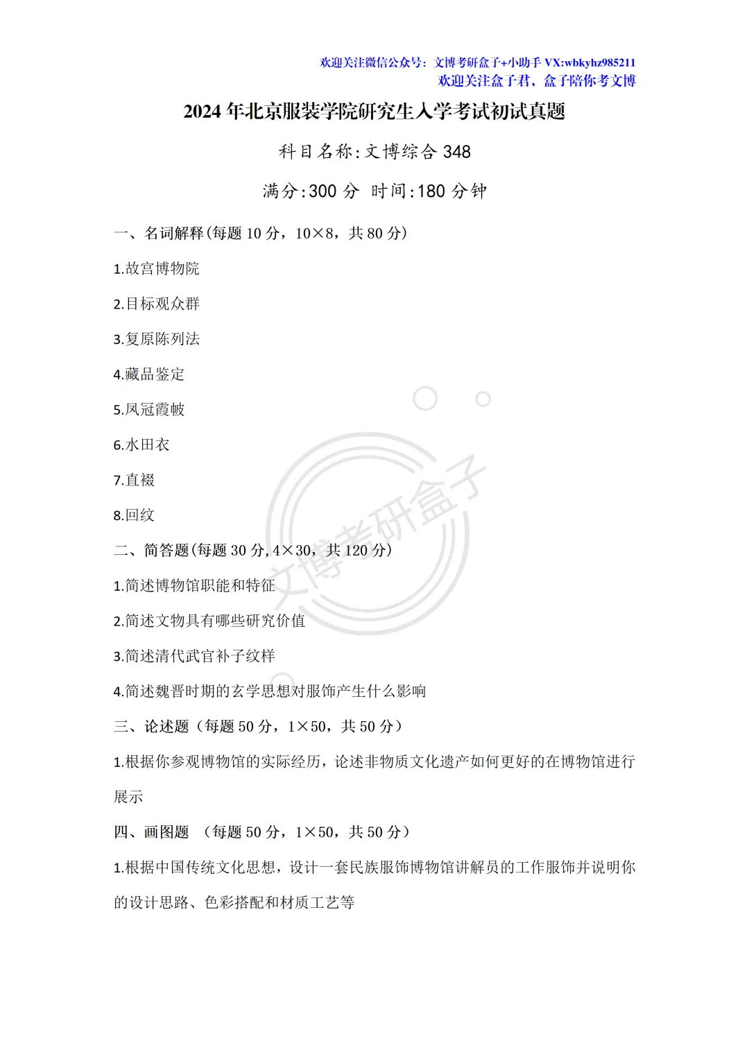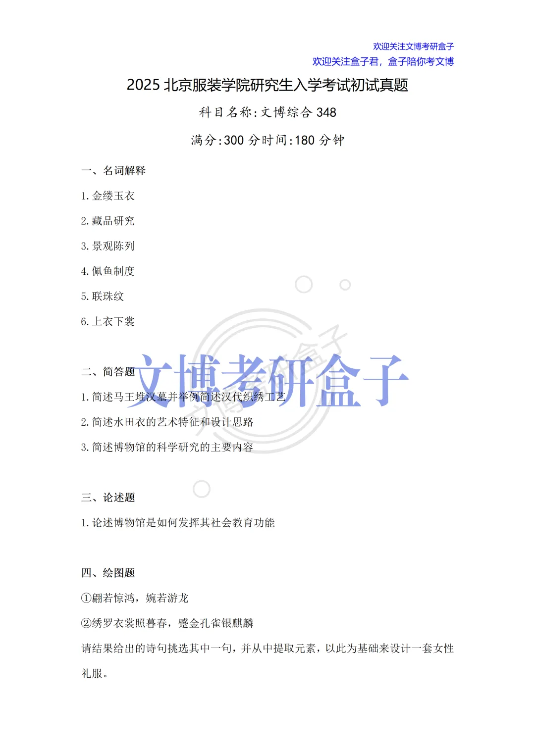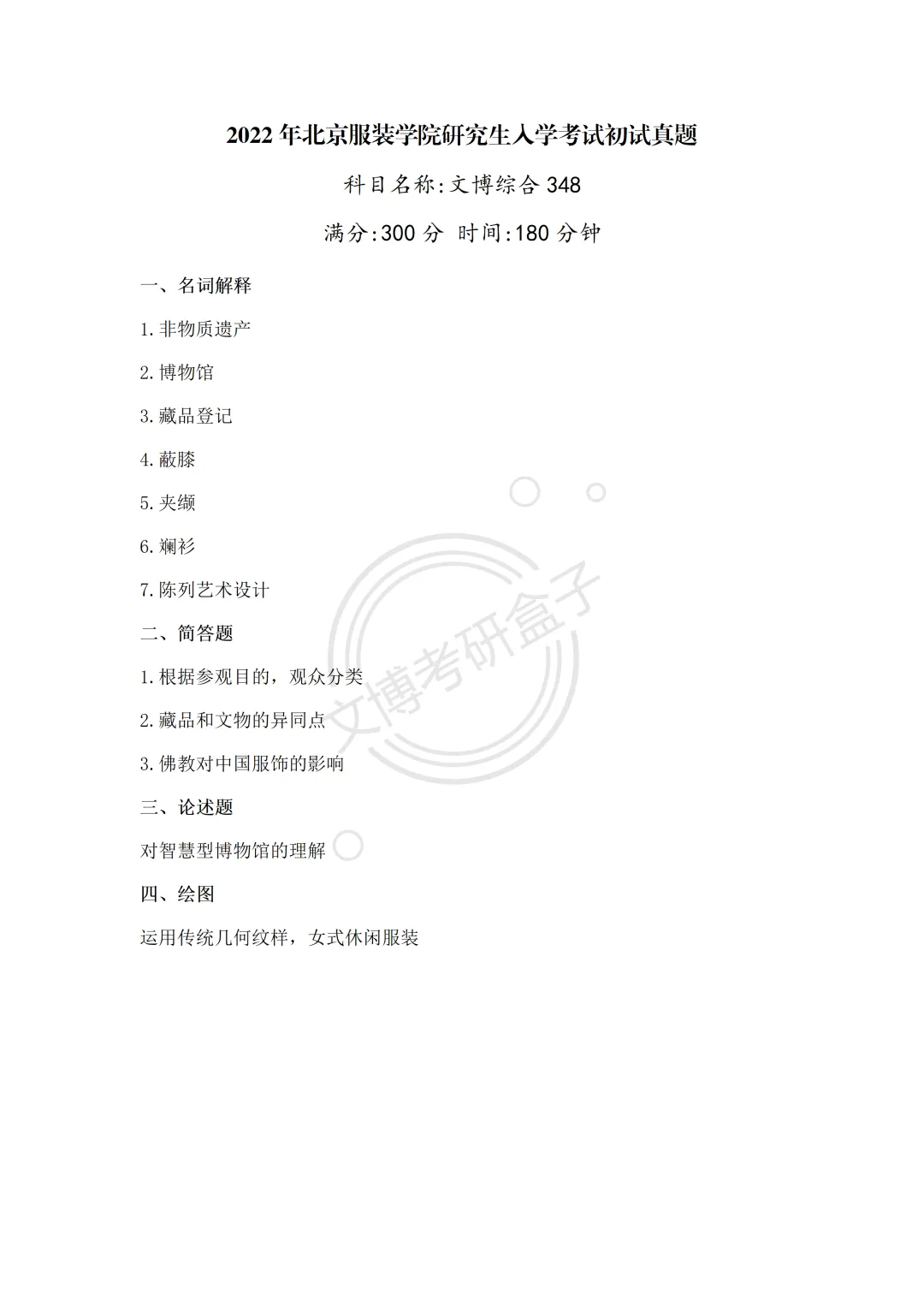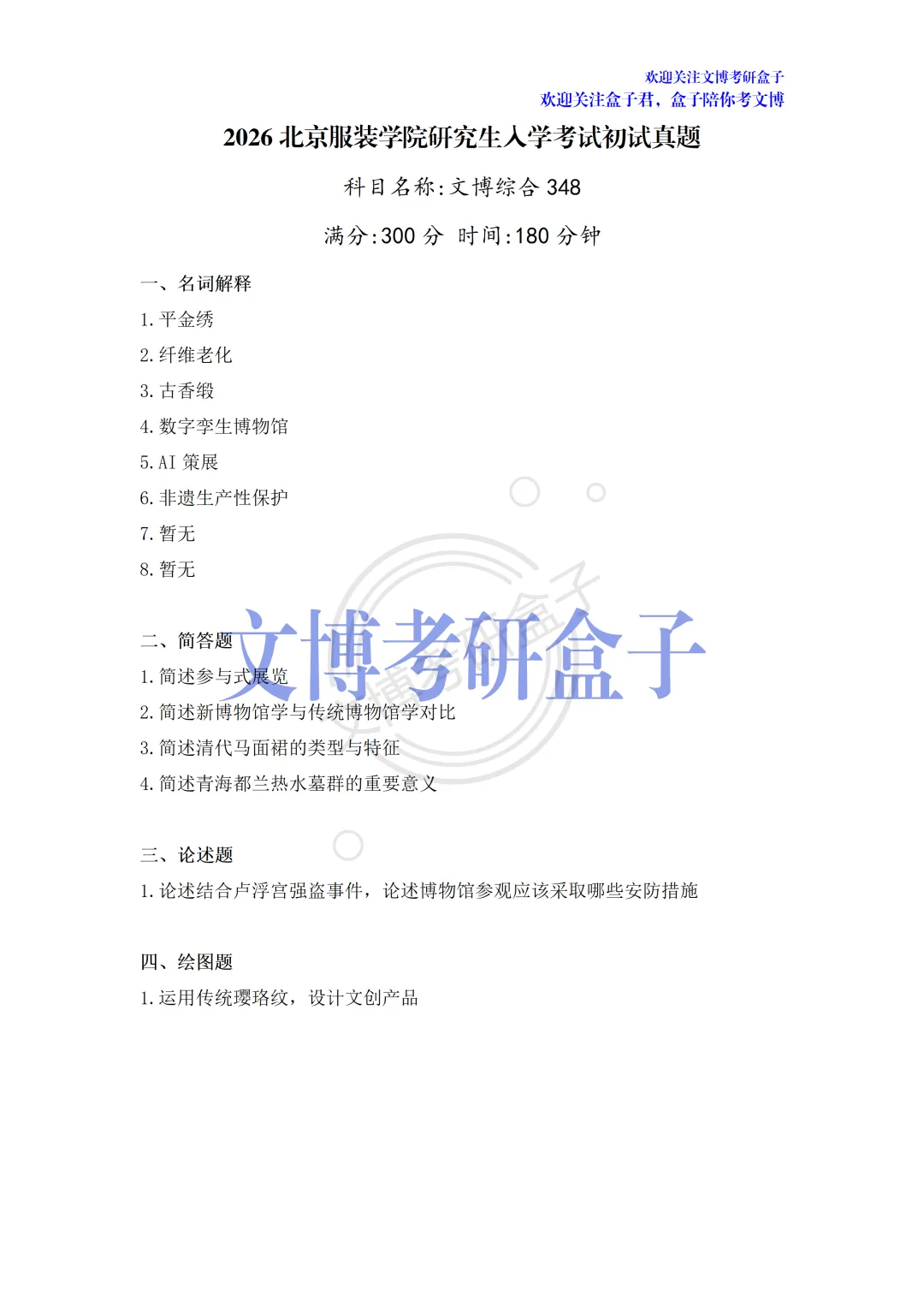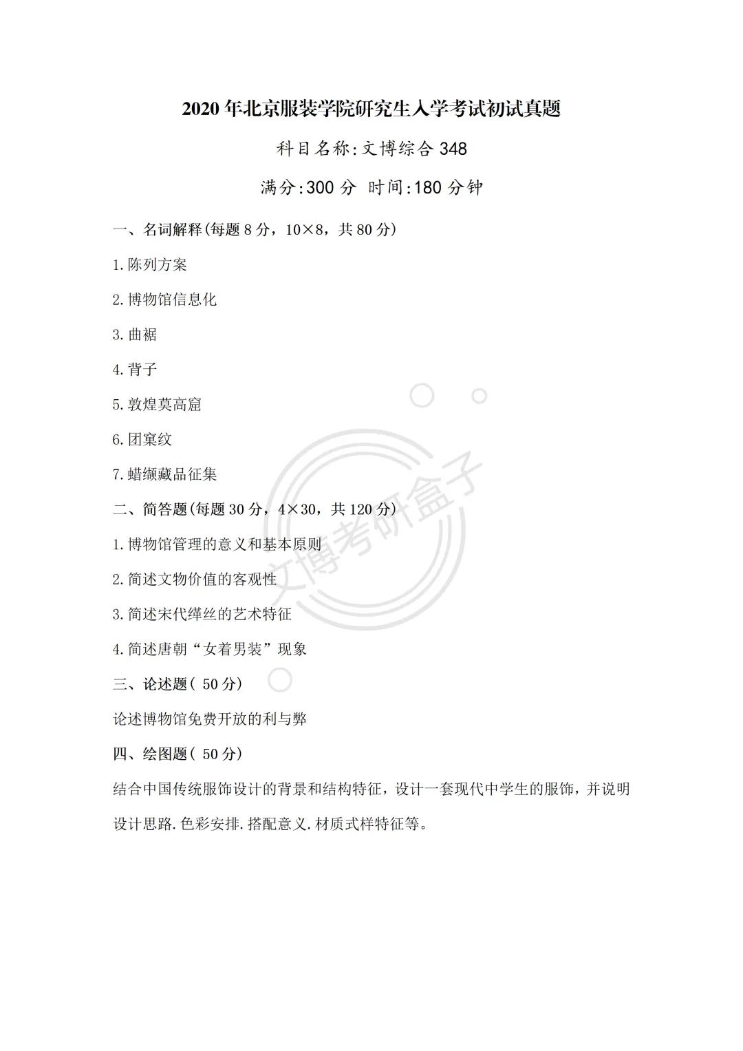 >文博考研 | 2020—2026年北京服装学院『文博专业考研真题合集』