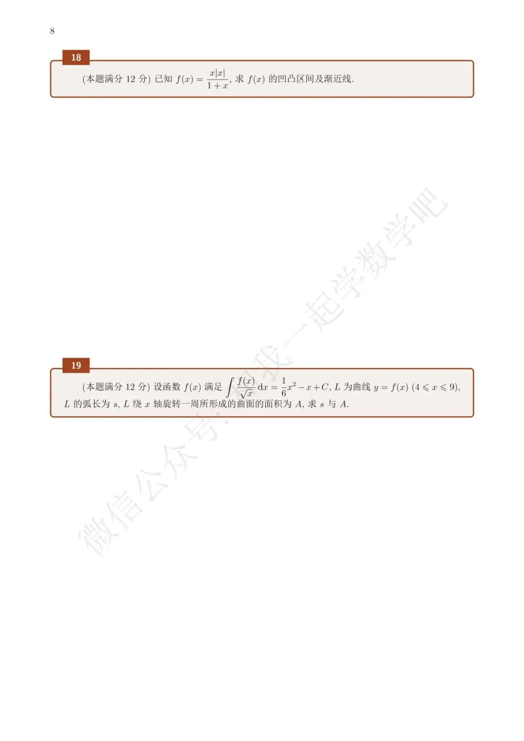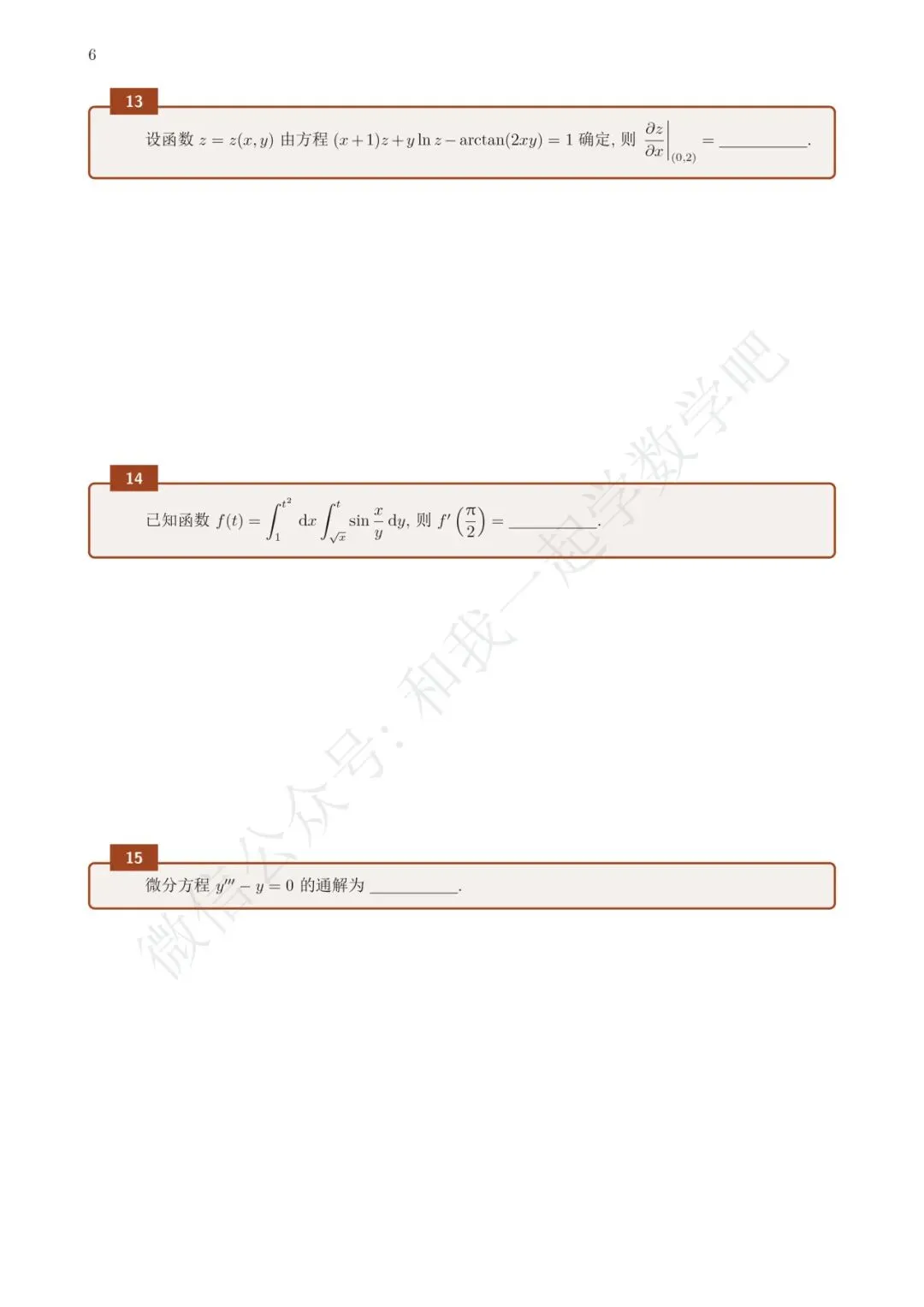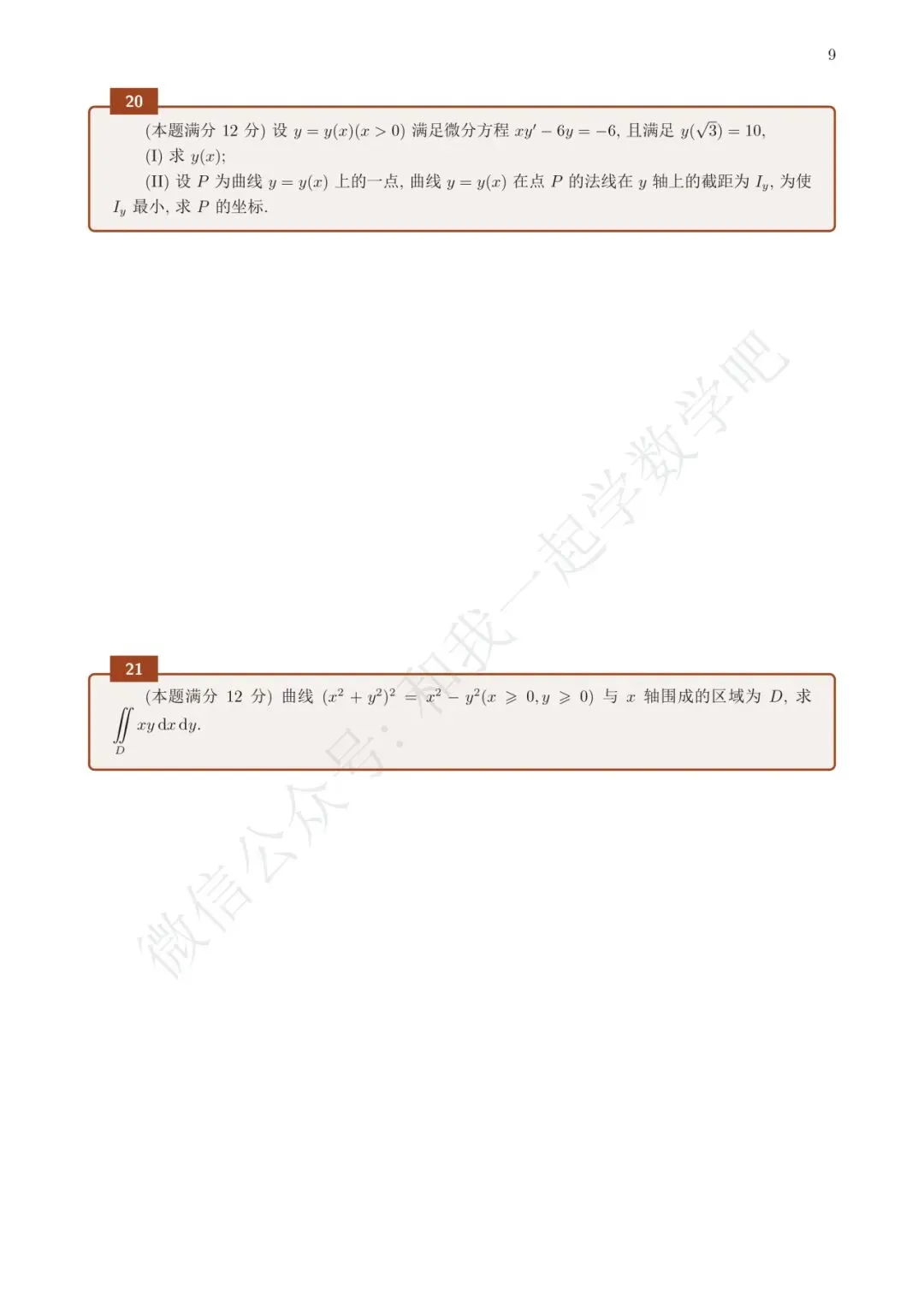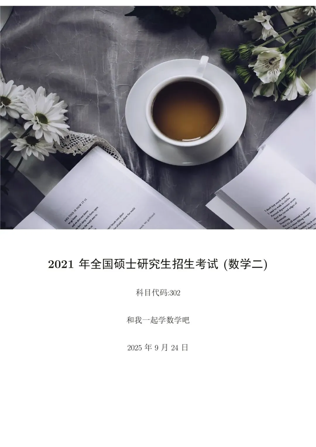 为了方便各位小伙伴们刷题,我重新排版了21年数二的真题,在每道题下面都增加了空白,方便大家写答案,记录相关知识点。