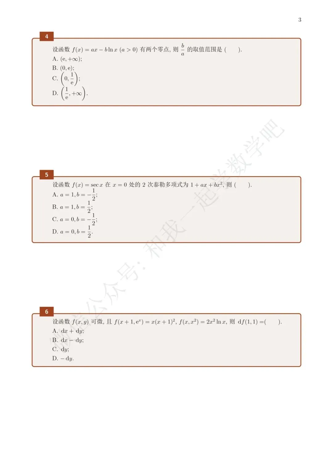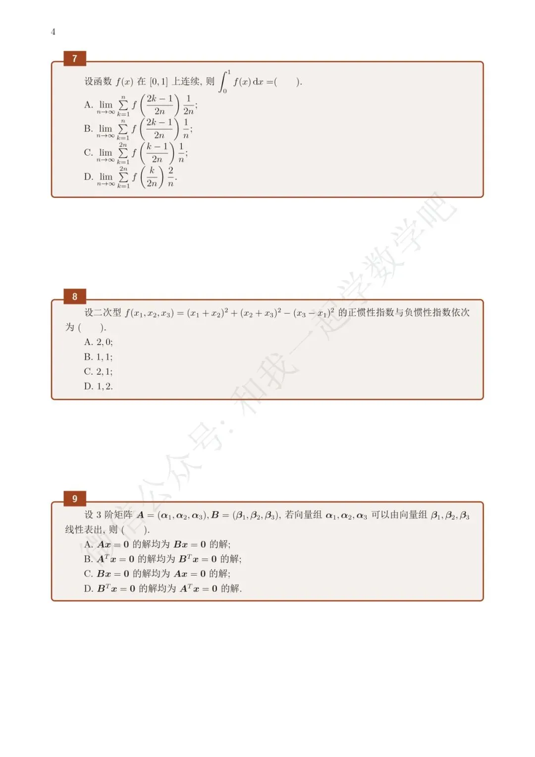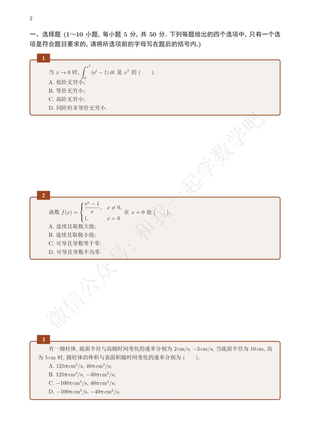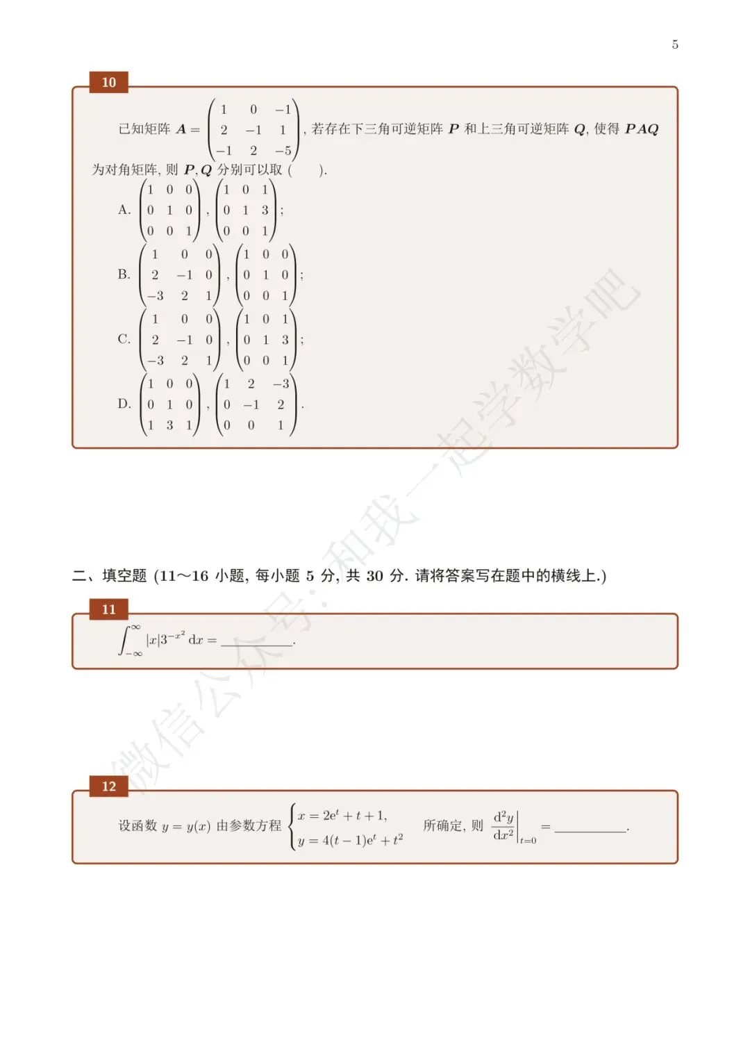 为了方便各位小伙伴们刷题,我重新排版了21年数二的真题,在每道题下面都增加了空白,方便大家写答案,记录相关知识点。