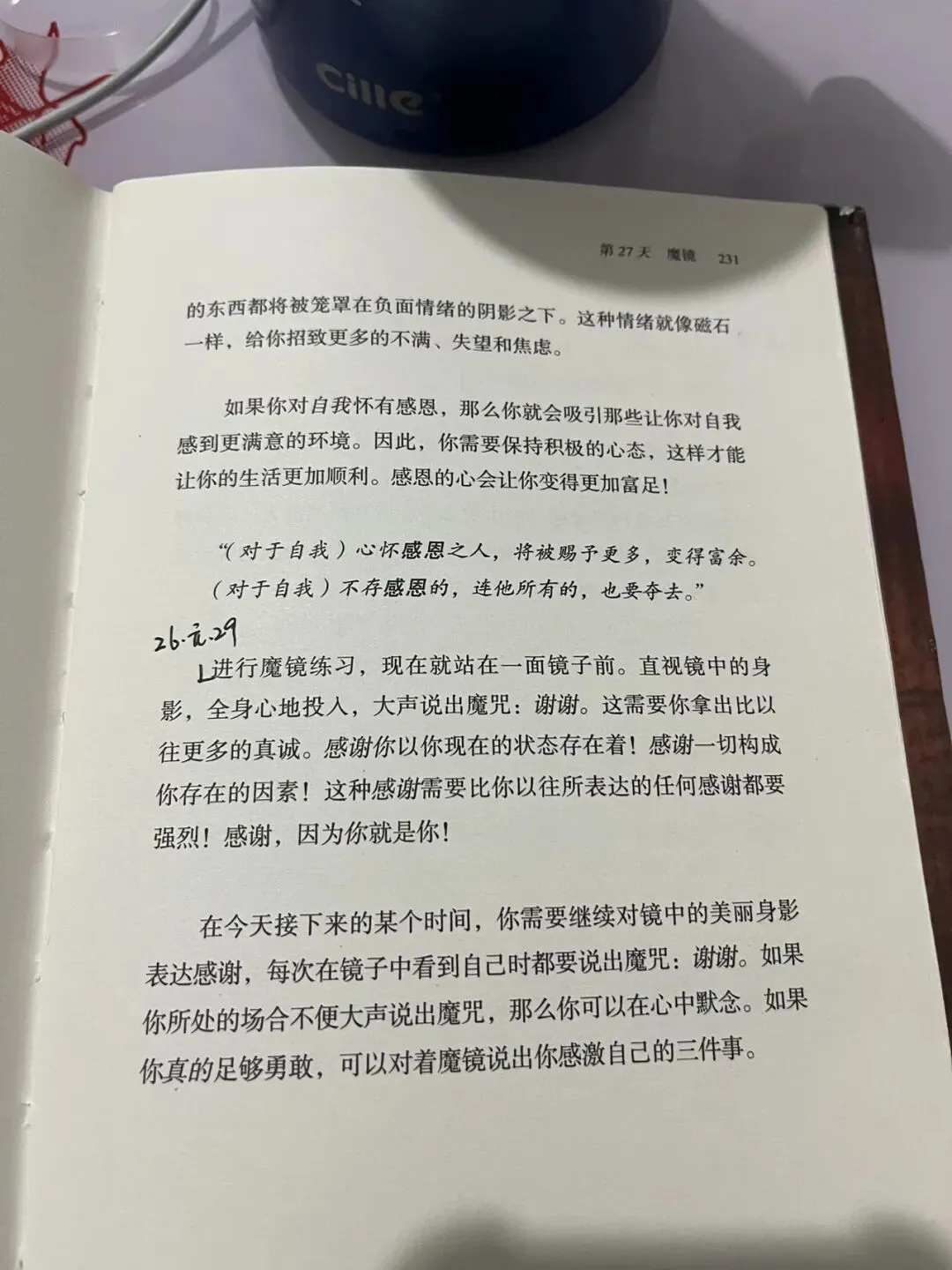2、“进行魔力练习,现在就站在一面镜子前。直视镜中的身影,全身心的投入,大声说出魔咒:谢谢。”