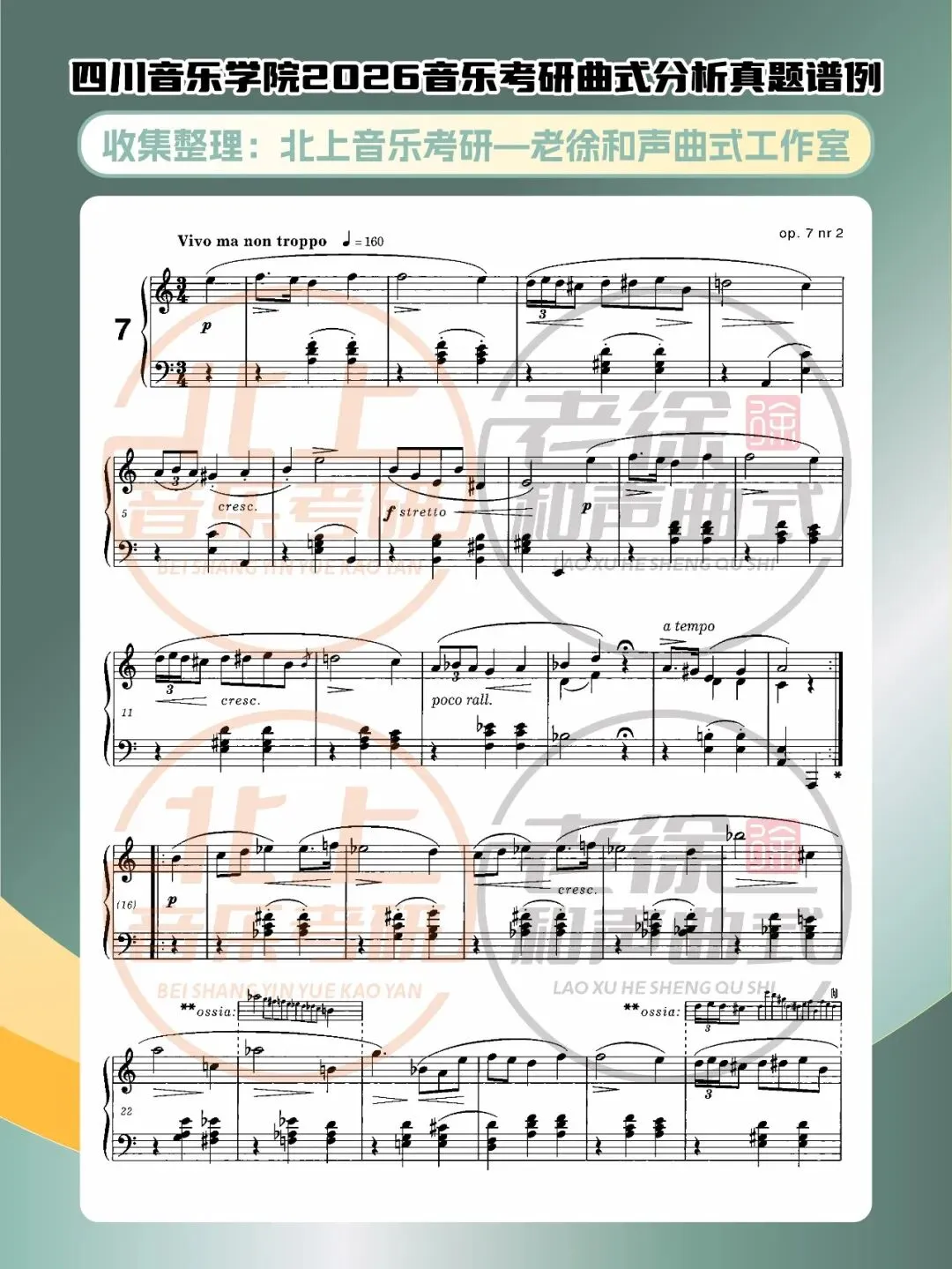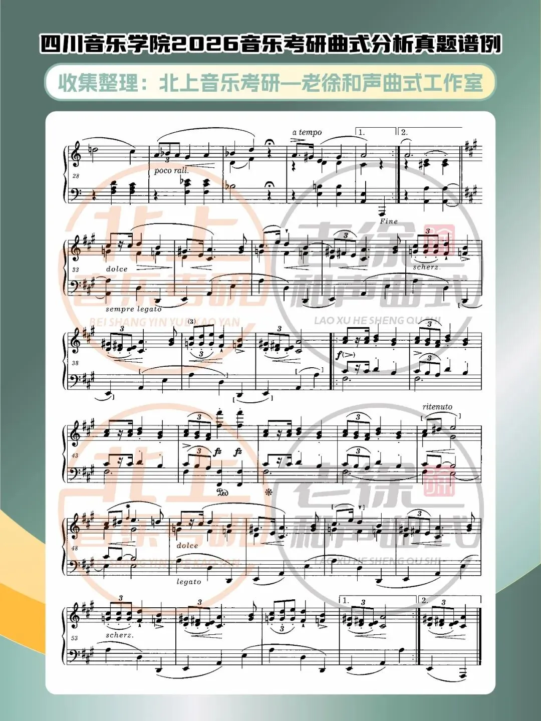 四川音乐学院2026音乐考研曲式分析真题谱例|北上音乐考研—老徐和声曲式工作室收集整理