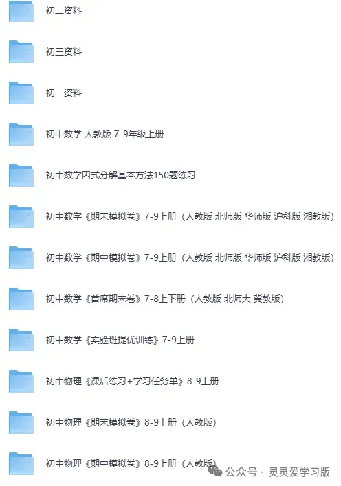 本内容分享【初中各年级教辅学习资料】