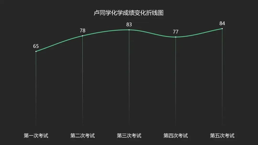 卢同学化学第一次考试65分,第二次考试78分,第三次考试83分,第四次考试77分,第五次考试84分。