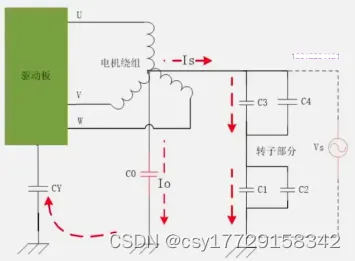漏流要经过Y电容回到电路板上,不然然电流会进过LISN,形成噪声。
