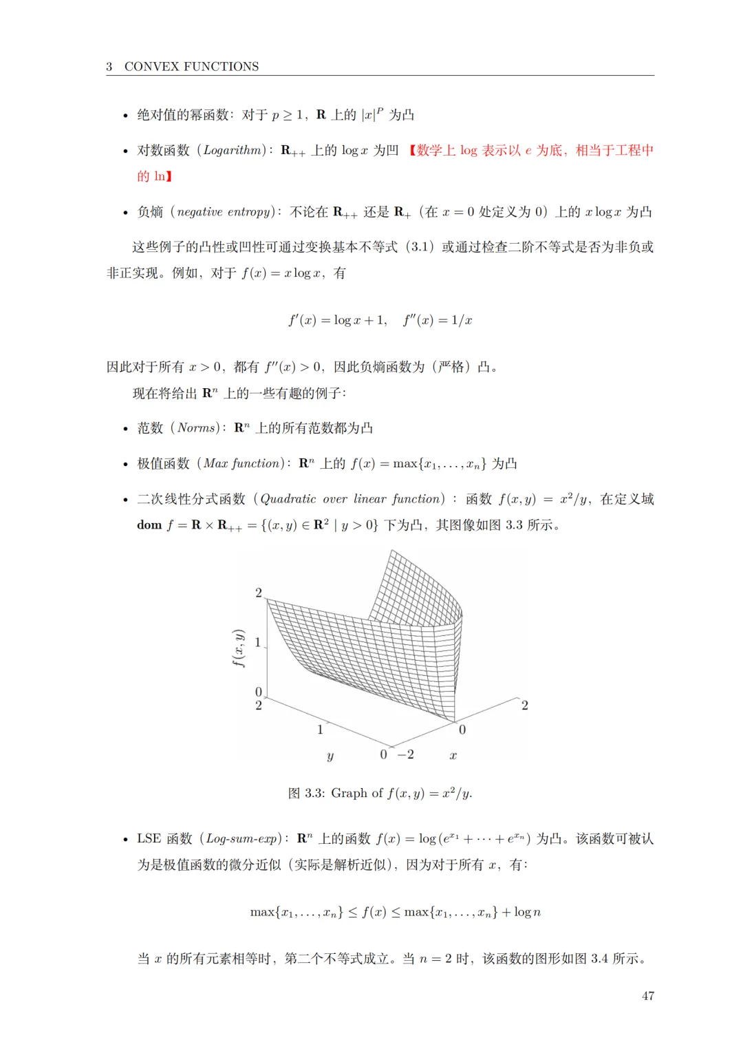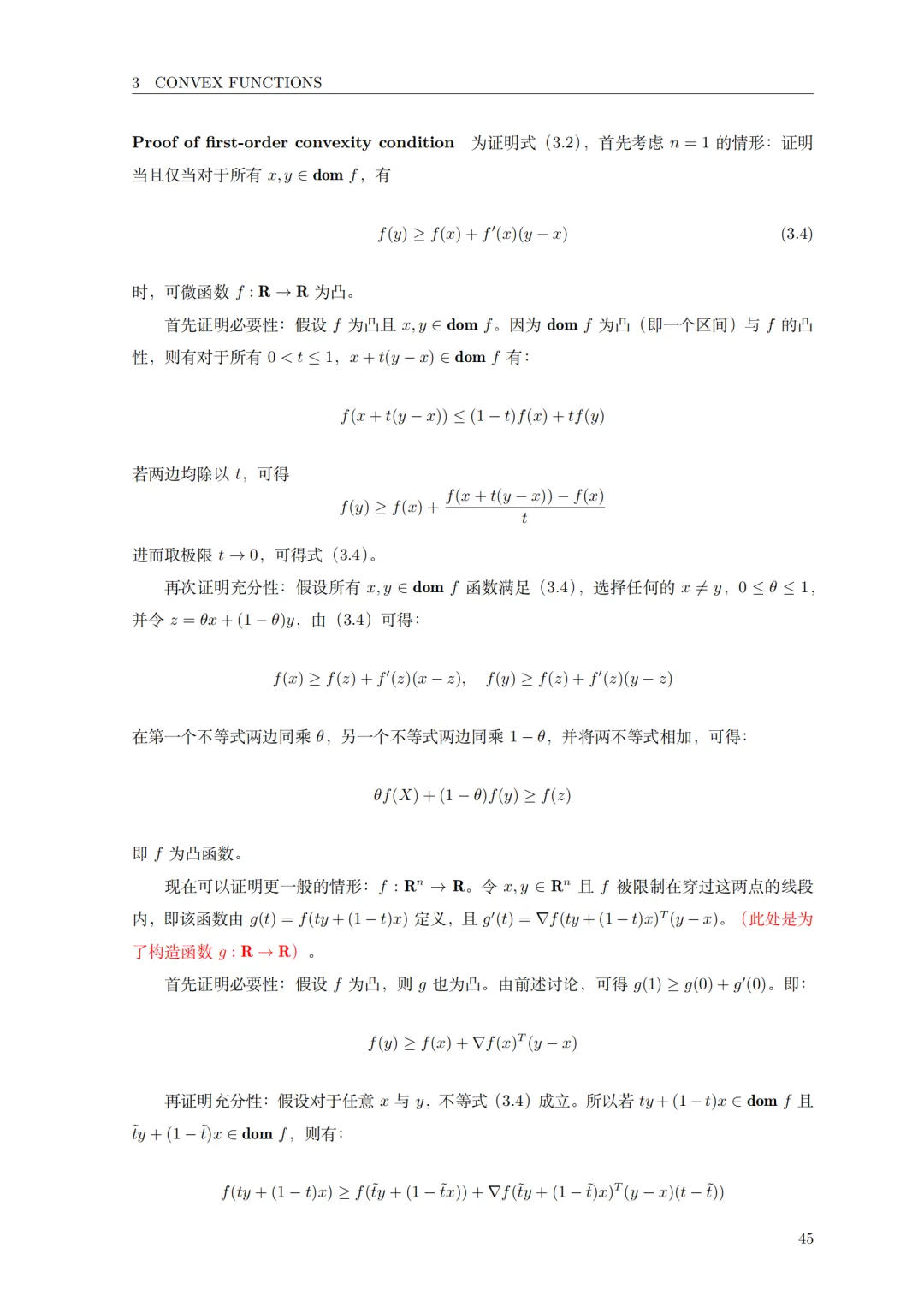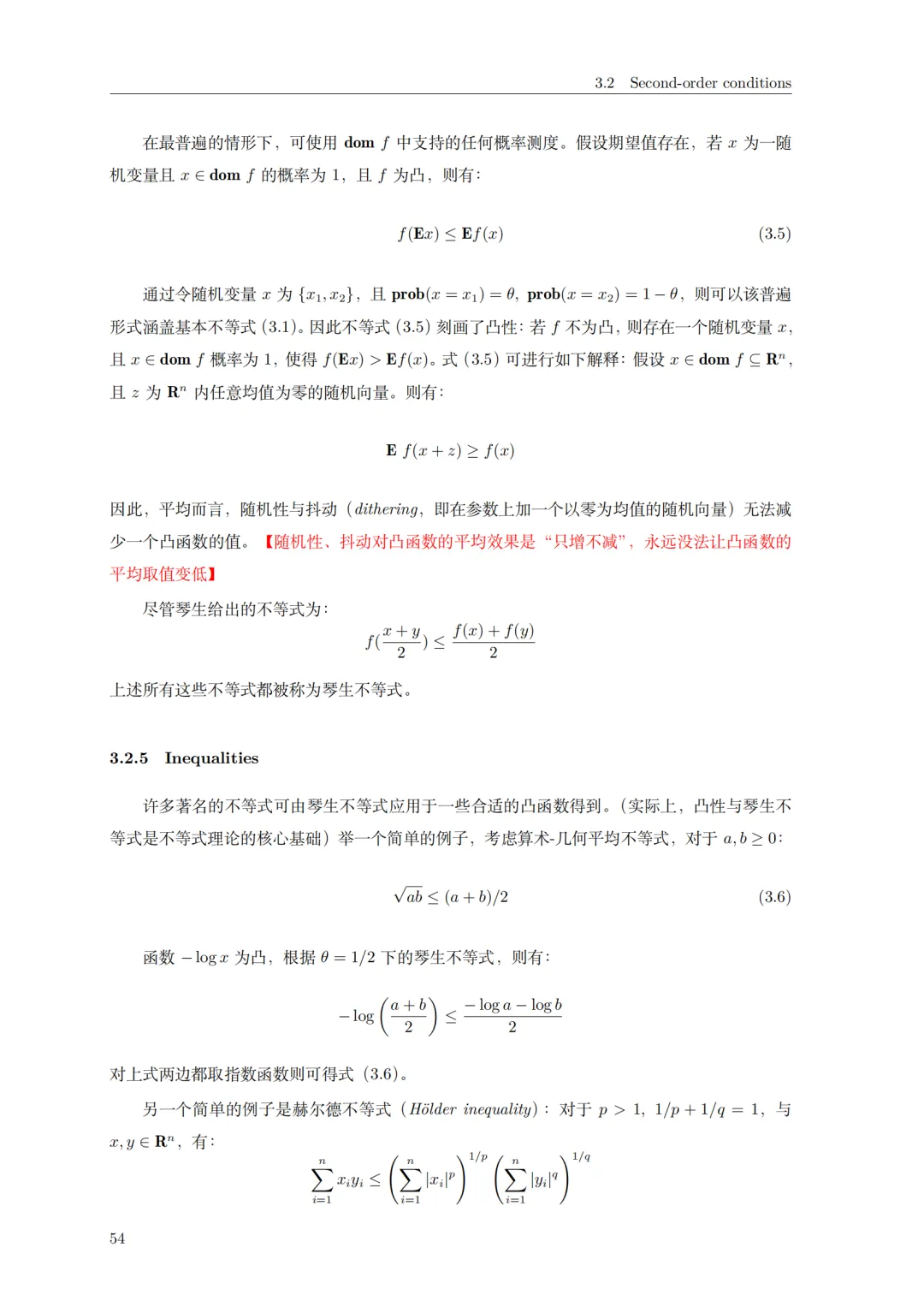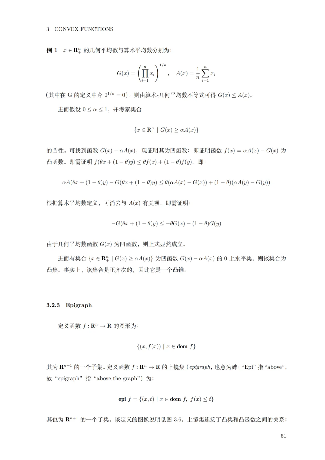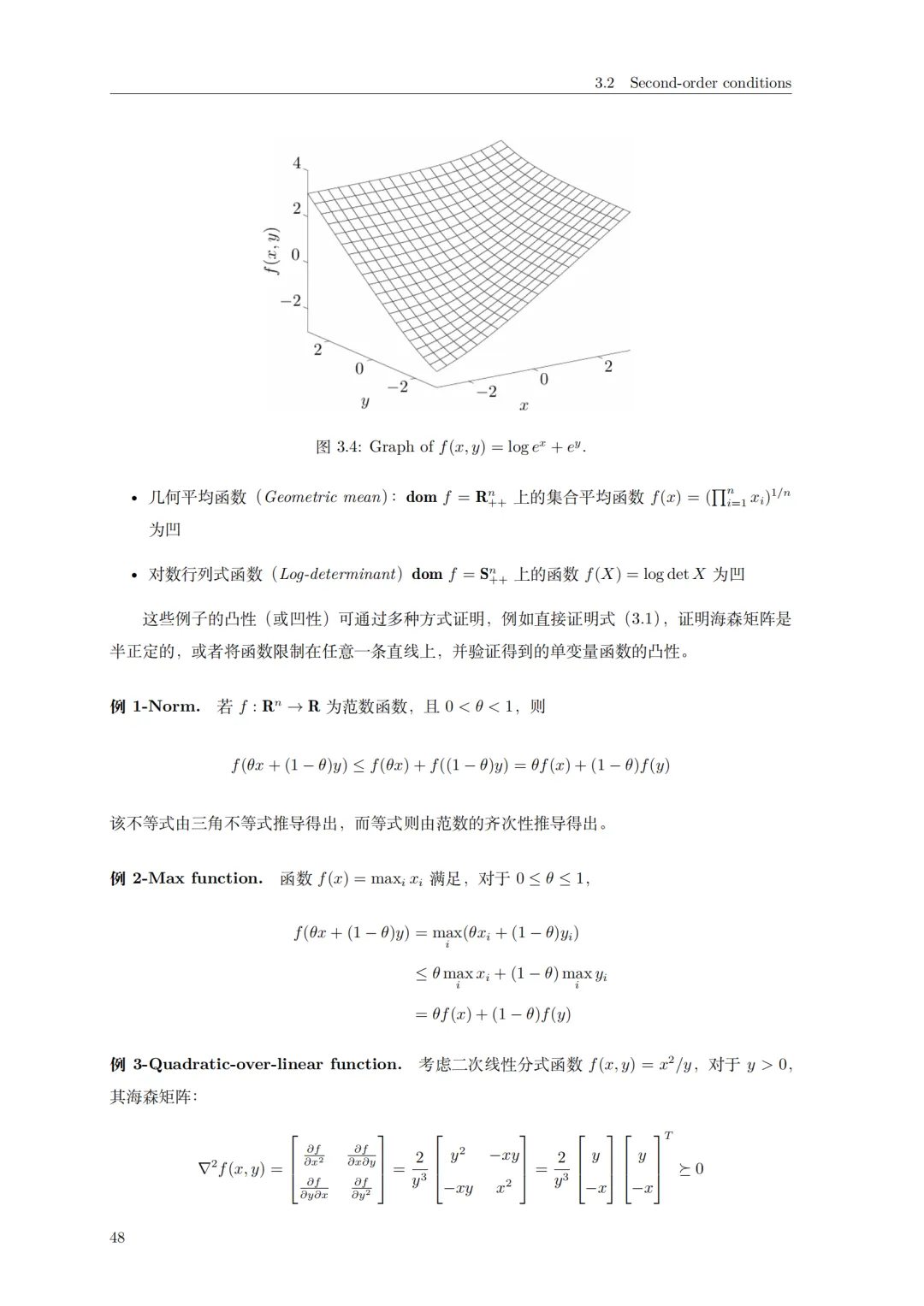本文为凸优化学习笔记的第五部分,包含Boyd《凸优化》3.1的内容。主要内容分为三部分,一部分围绕凸函数的基本定义展开,介绍了扩充实值函数、凸函数的一阶条件与二阶条件,同时给出了许多常见凸函数的例子并进行了证明;第二部分从几何角度对凸函数进行刻画,引入了上/下水平集、上/下镜集的概念;第三部分从解析角度对凸函数进行推广,引出了琴生不等式以及许多相关实例。