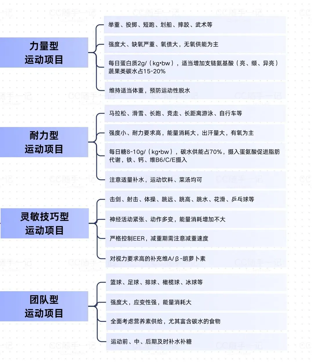 >营养师学习笔记—运动员不同运动项目的营养需要