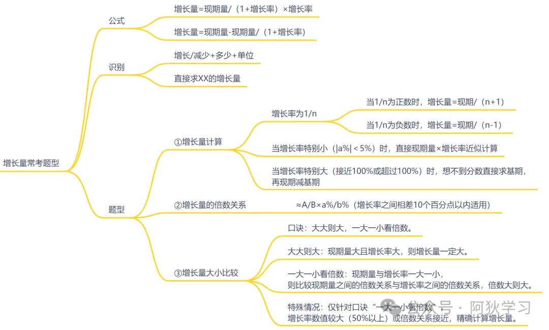 1、公式:增长量=现期量/(1+增长率)×增长率=现期量-现期量/(1+增长率)