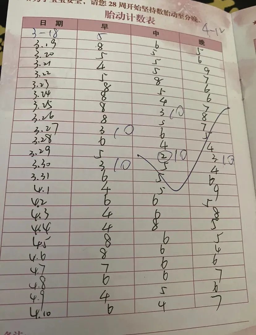 • 计算方式:将3个小时的胎动次数相加,再乘以4,即可得出12小时的胎动总数