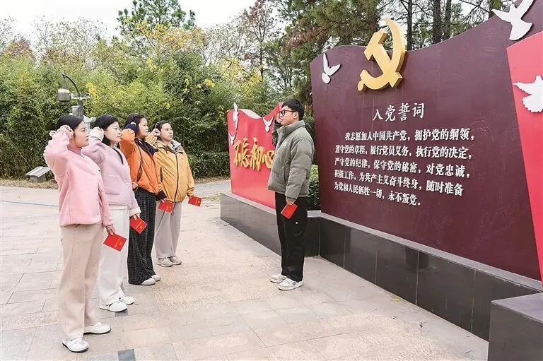 2025年12月2日,江苏省南京市溧水区纪委监委组织部分青年党员干部进行党章学习。图为青年党员干部在重温入党誓词。刘胜君 摄