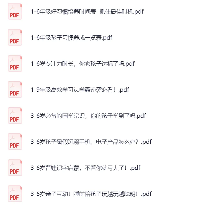 名称:【小学资料】家长必备育儿干货资料学习方法大合集 (高清资料整理版)