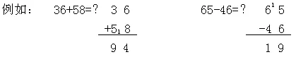 ⑤两位数加两位数不进位加法或两位数减两位数不退位减法