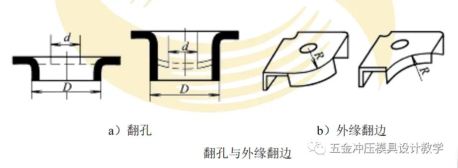 按制件边缘性质不同,翻边有翻孔、外缘翻边和变薄翻边之分。