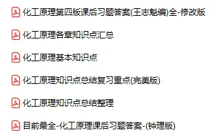 今天分享的资料是「化工原理」电子版+学习笔记+知识点总结+期末考试重点+复习资料+习题集及答案+名词解释+历年真题试卷及答案+题库及答案+复习重点+思考题及参考答案+公式总结+考试重点基础题+知识总结+高清PDF可打印+免费分享!